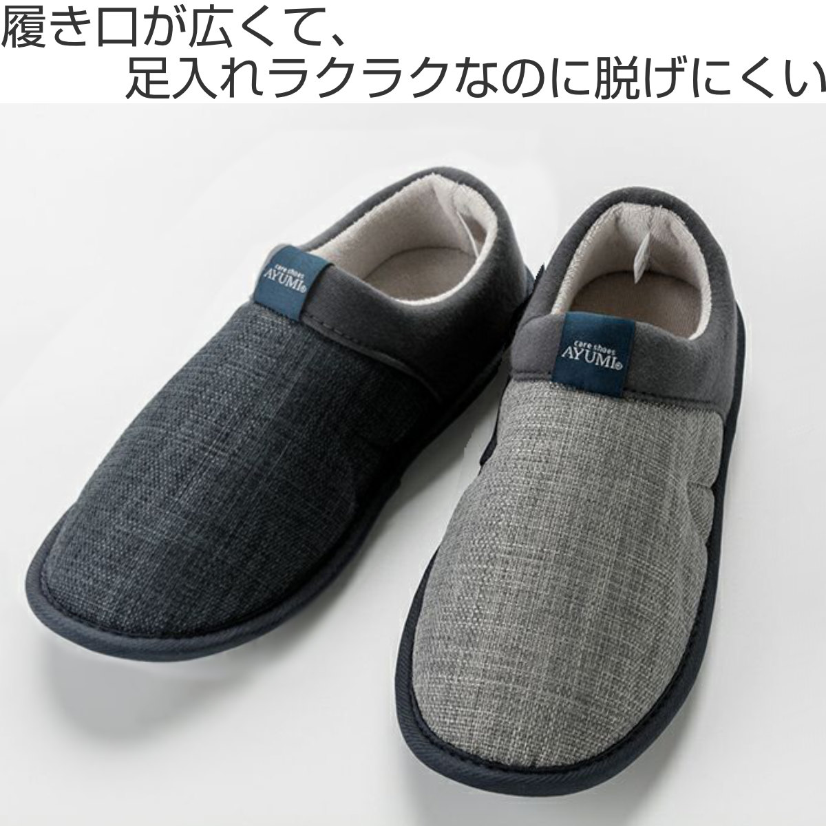 転倒の5割は室内で起きています。お家でも安全にお過ごしいただくため、履きやすく動きやすく、転倒しにくい安心設計です。足入れしやすいのに脱げにくく、足に心地よくフィットします。