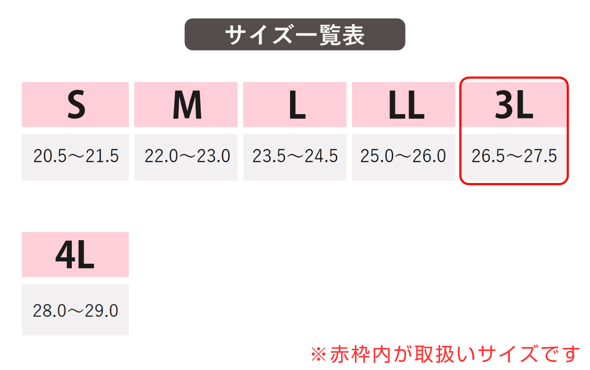 ![]() LL(25.0~26.0cm) | ![]() 3L(26.5~27.5cm) 【▲このページの商品】 |