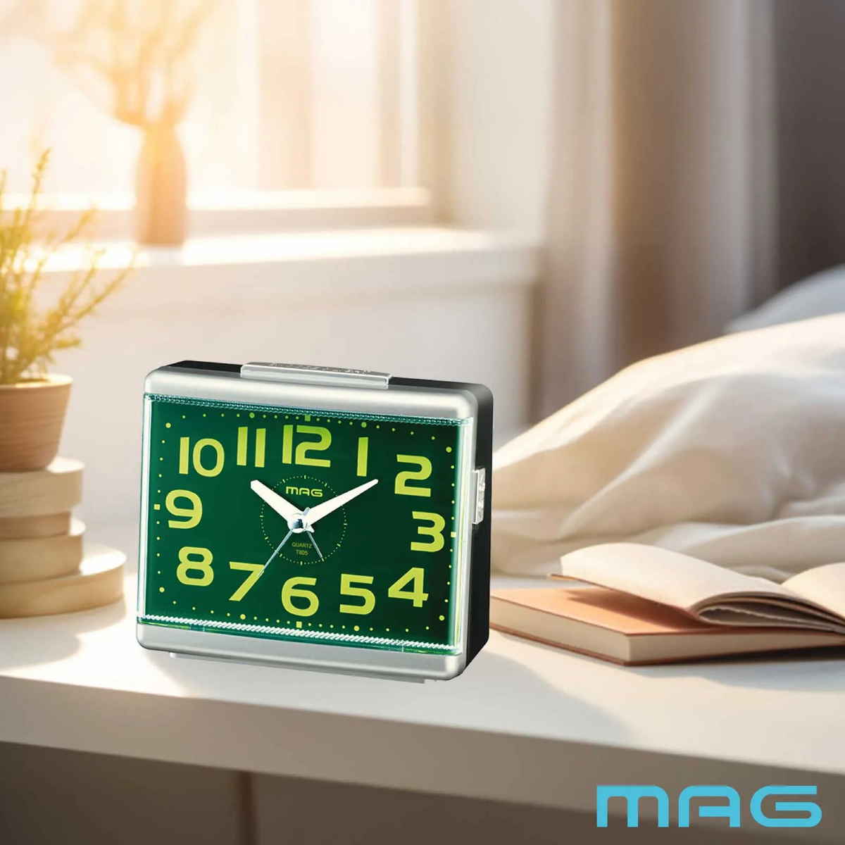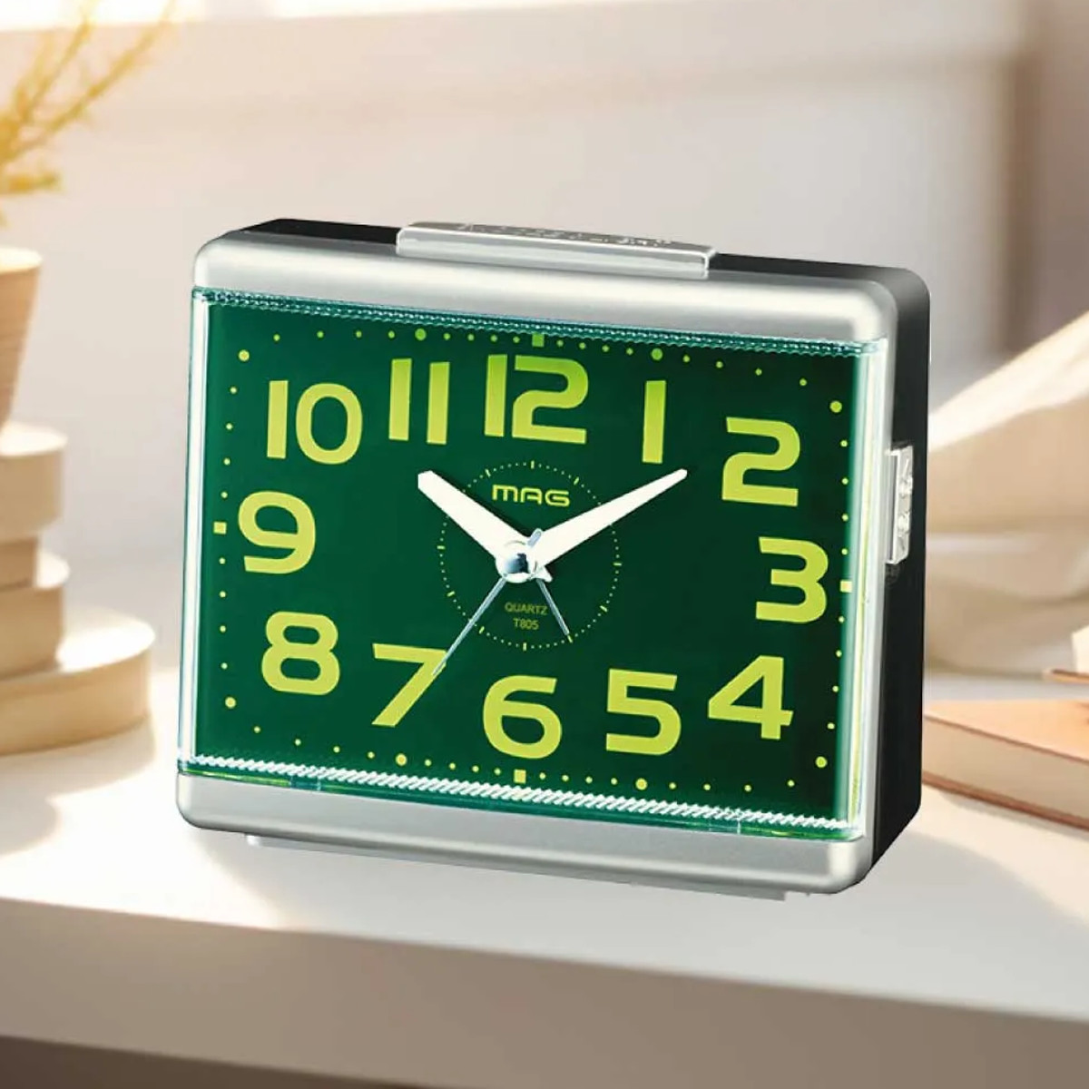 ●コントラストの効いた文字盤と大きな数字が見やすい目覚まし時計です。