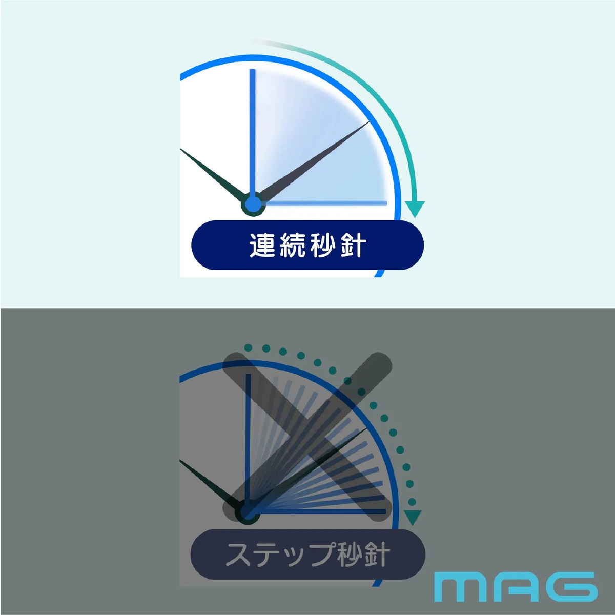 ●秒針が滑らかに動く連続秒針なので、カチカチ音が気になりません。