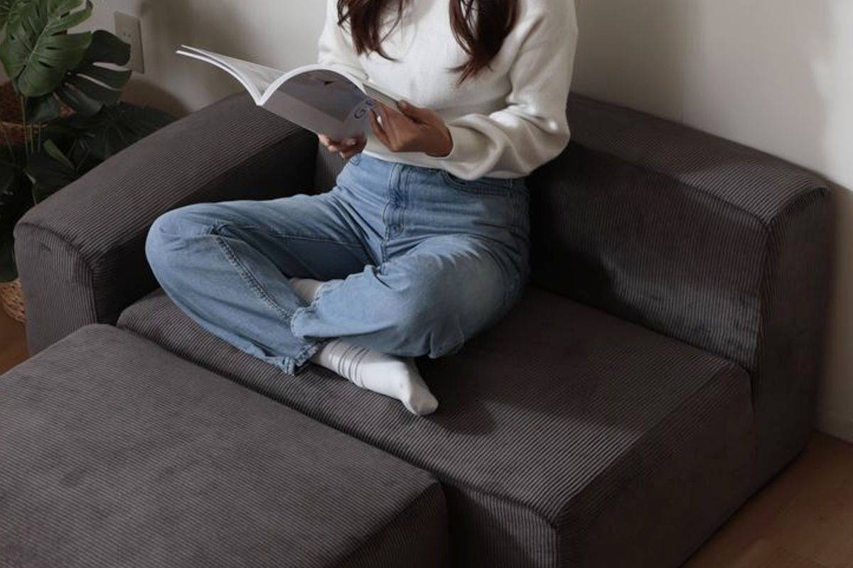 オットマンを組み合わせれば、ゆったりくつろげるカウチスタイルに。読書や映画鑑賞など、リラックスタイムにぴったりです。