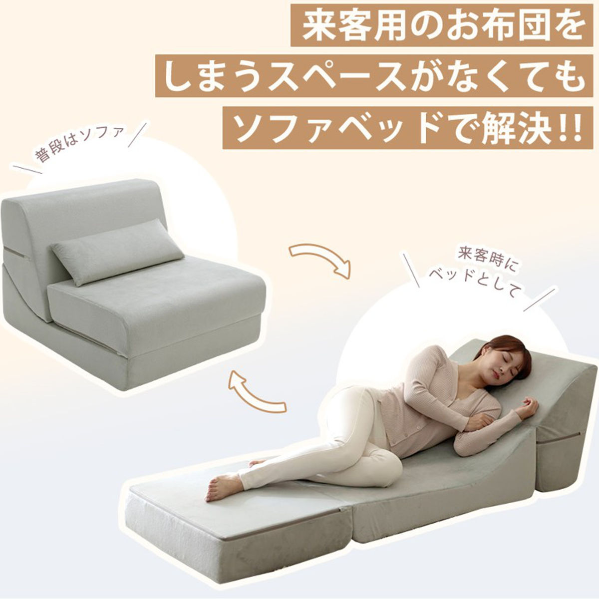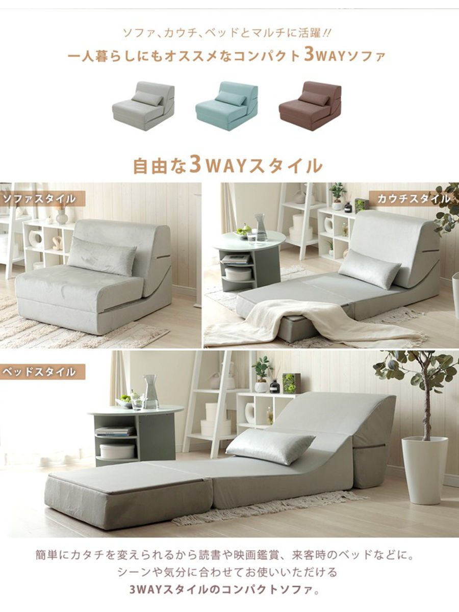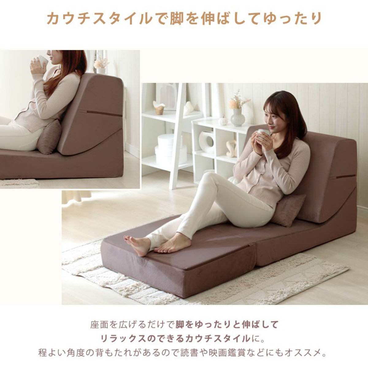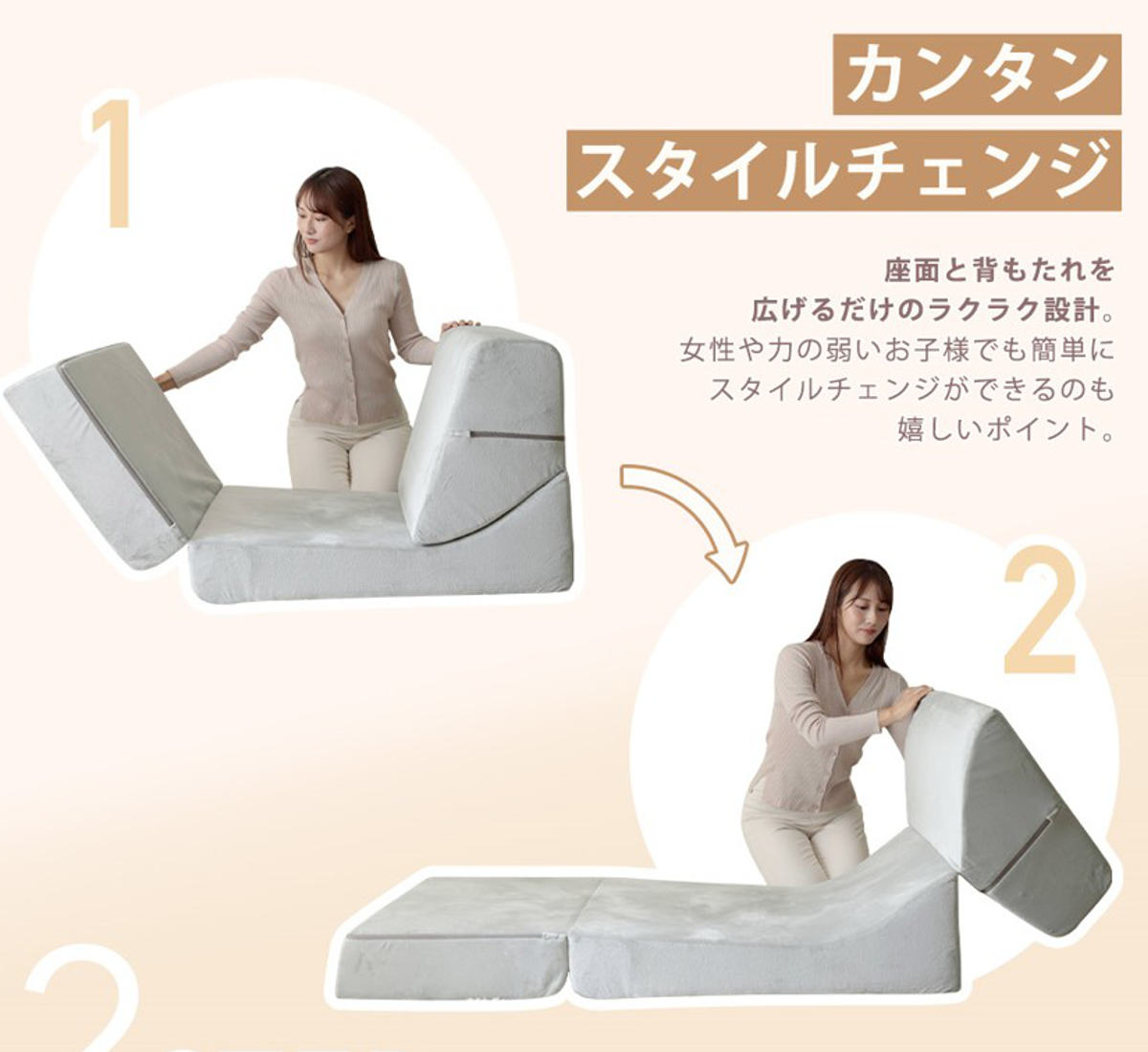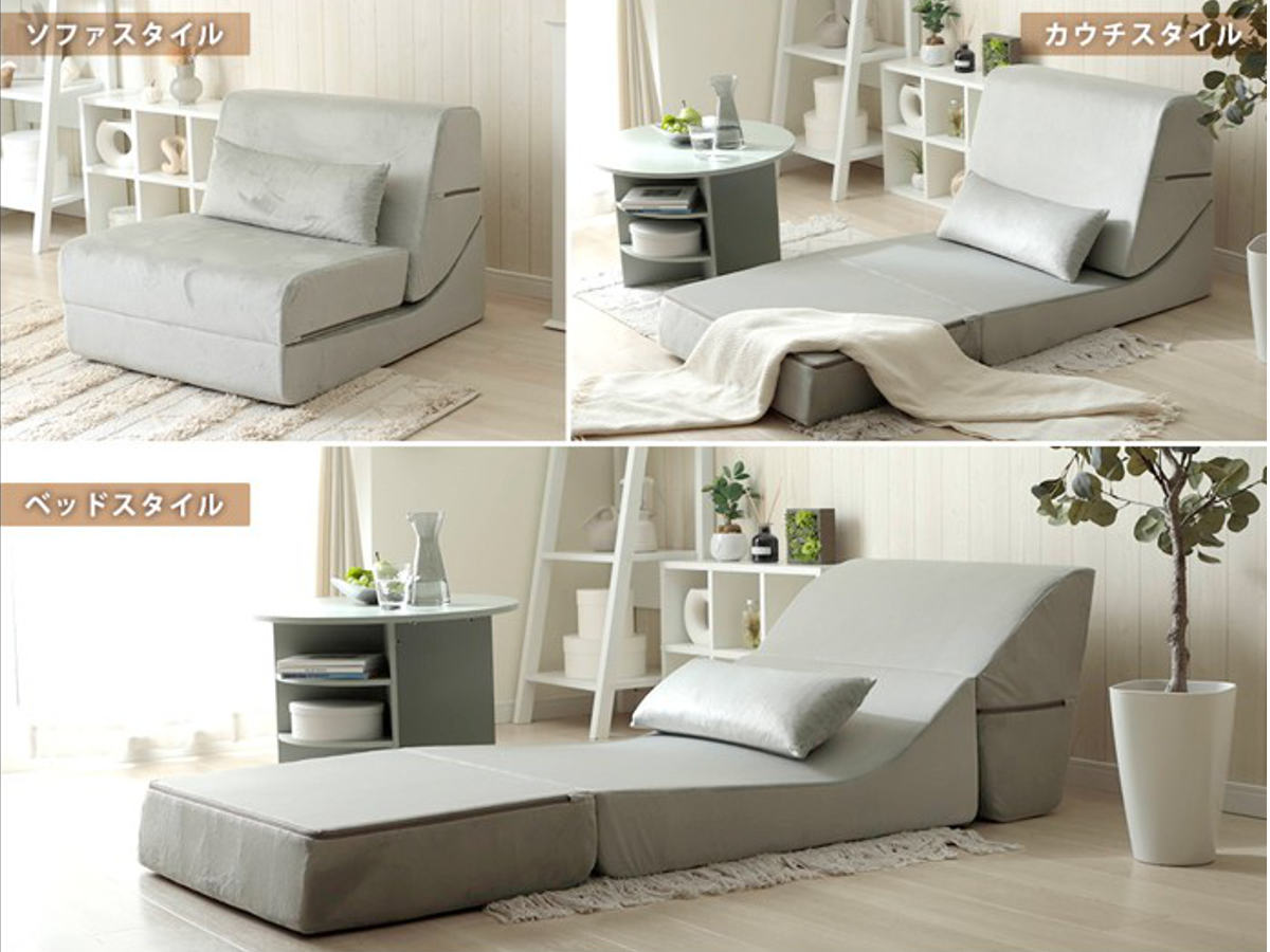 ソファ・カウチ・ベッドの3パターンで使える多機能デザイン。簡単にスタイルチェンジでき、くつろぎ方に合わせてさまざまなシーンで活躍します。