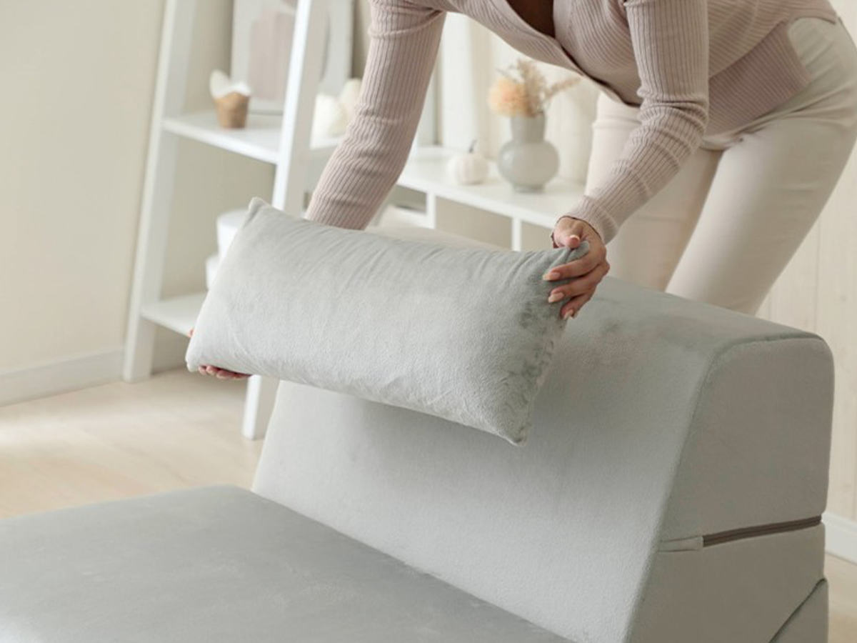 付属のクッションは、枕や腰当て、足置きとしても活躍。くつろぎ方の幅が広がります。
