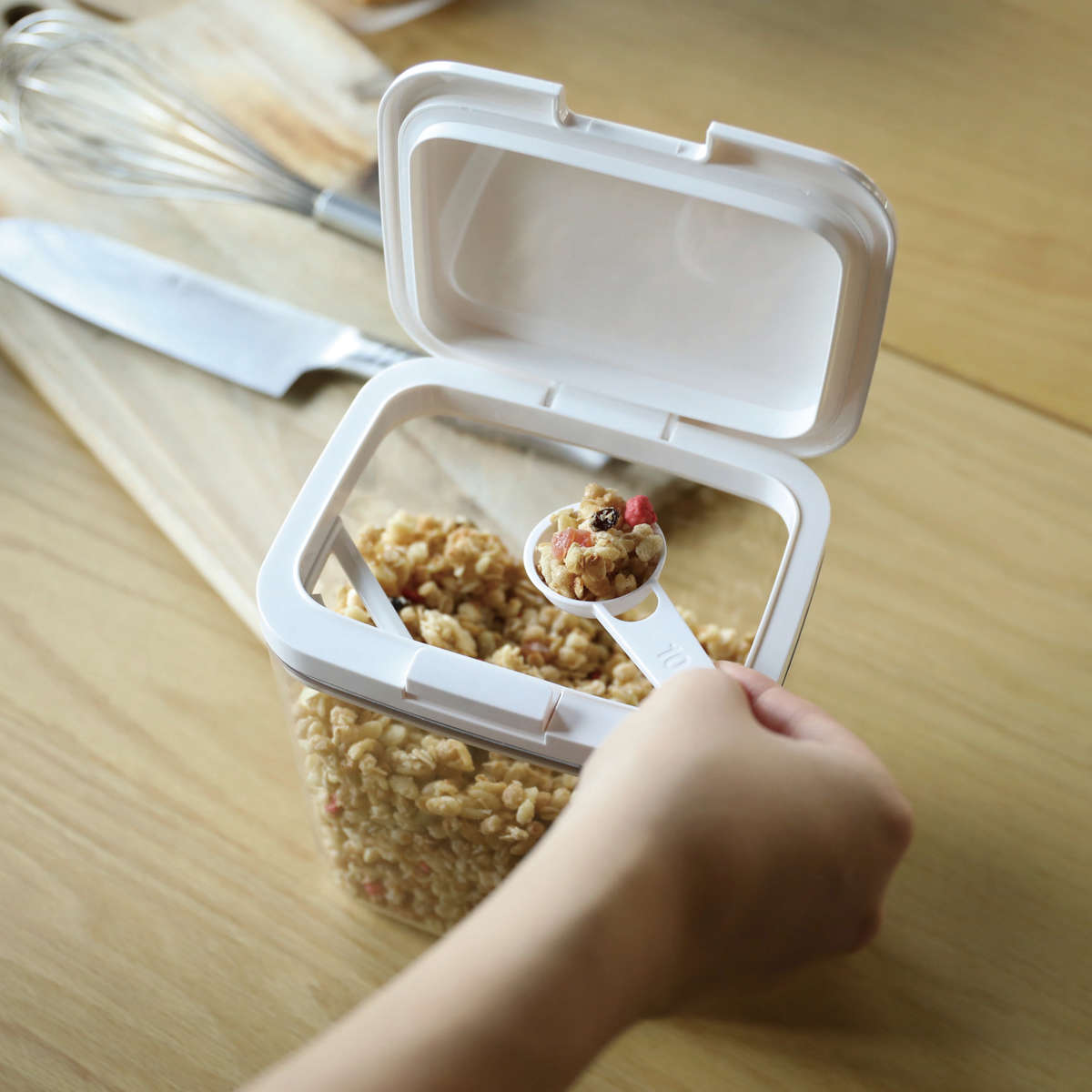 密閉することで湿気や強いニオイから食材を守り、カビや虫の発生も防げます。清潔に保ちながら、安心して食材をストックできます。