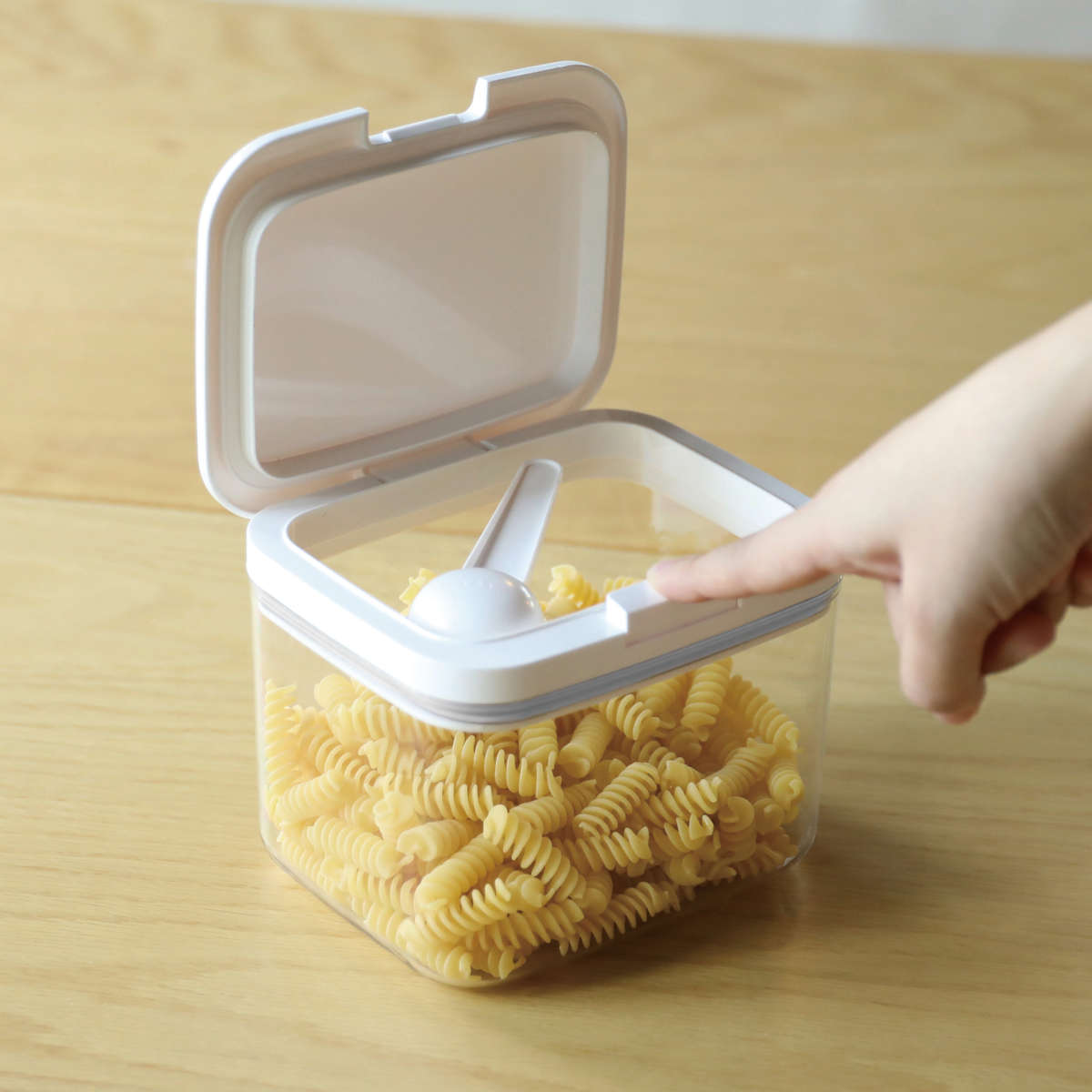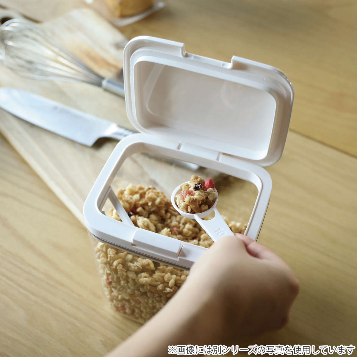 広口形状で食材の出し入れがしやすく、日々の調理や保存がスムーズに行えます。個装のまま入れられるため、詰め替えの手間も省けます。便利な計量スプーンも付いています。