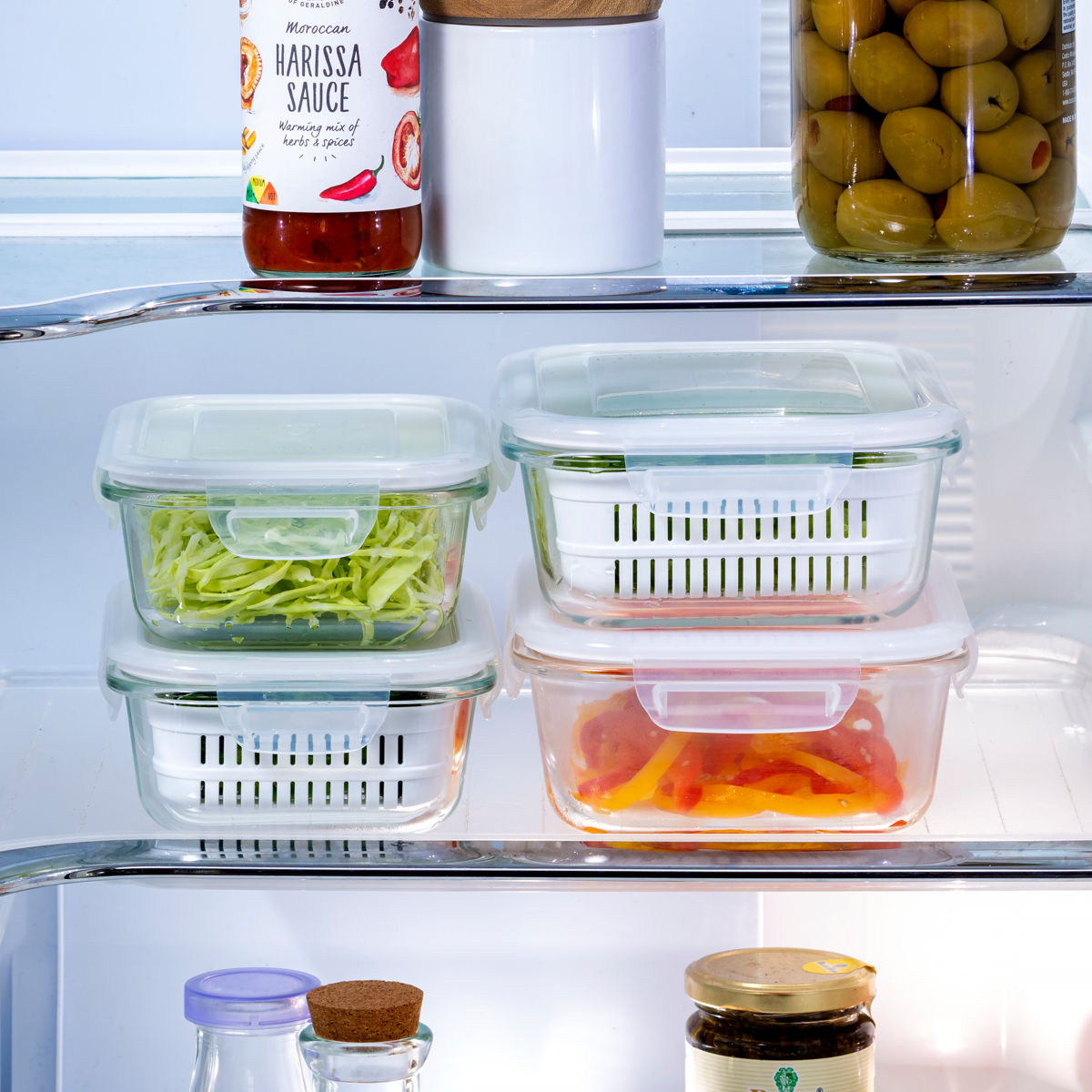 ●積み重ねて収納できるので冷蔵庫内をすっきり整理できます。