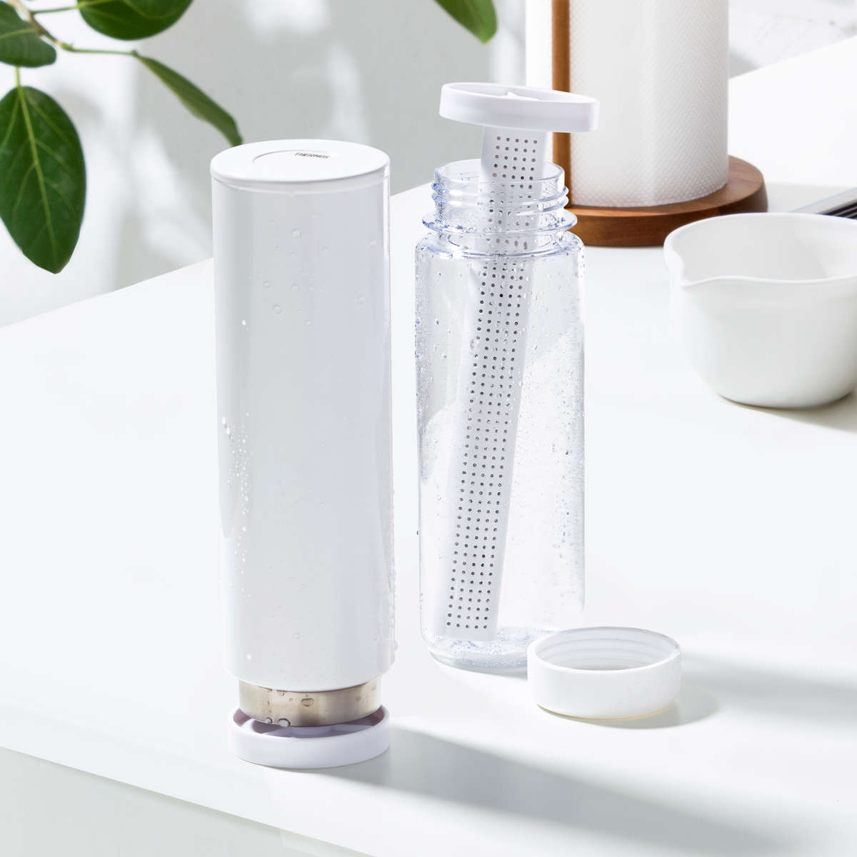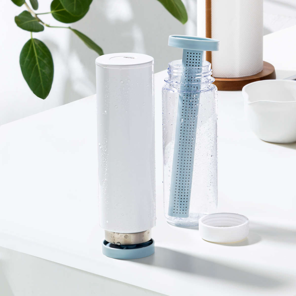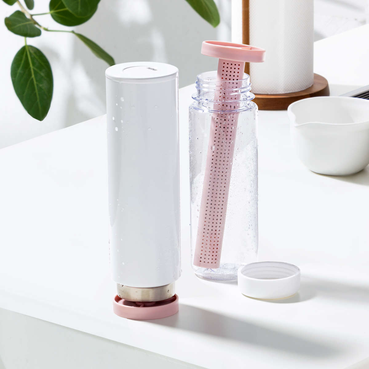 多孔質セラミックを使用したスティックがボトル内部の湿気を素早く吸収し、乾きにくいボトルの底までしっかり乾燥させます。差し込むだけで自立するため、水切りラックを占領せず、省スペースで置けるのも便利です。