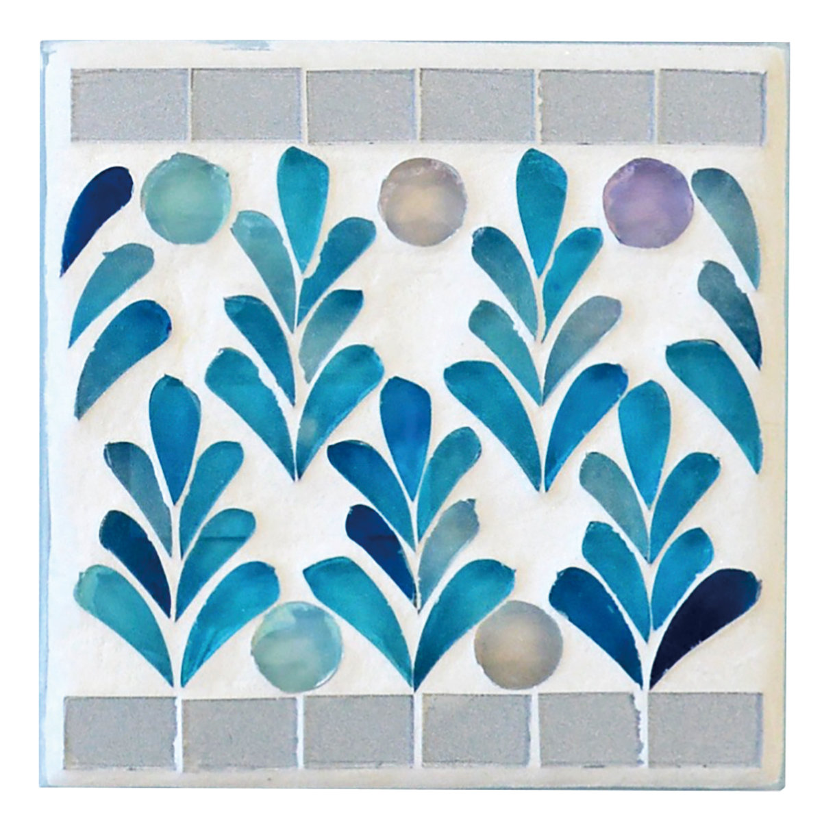 モザイクガラスが光を受けてキラキラと輝き、光の当たり方によって色合いの変化を楽しめます。一つひとつ手作業で作られているため、同じデザインでも異なる表情を持つ特別感も魅力です。