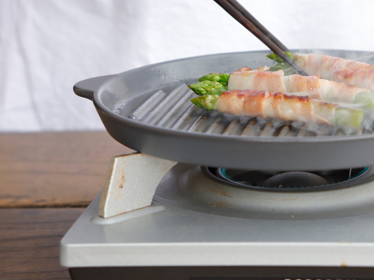 立ち上がりとエッジのある溝で、肉や魚の余分な油を落とし、ヘルシーに調理できます。耐熱性に優れているため、BBQコンロでステーキを焼くなど、アウトドアシーンでも活躍します。