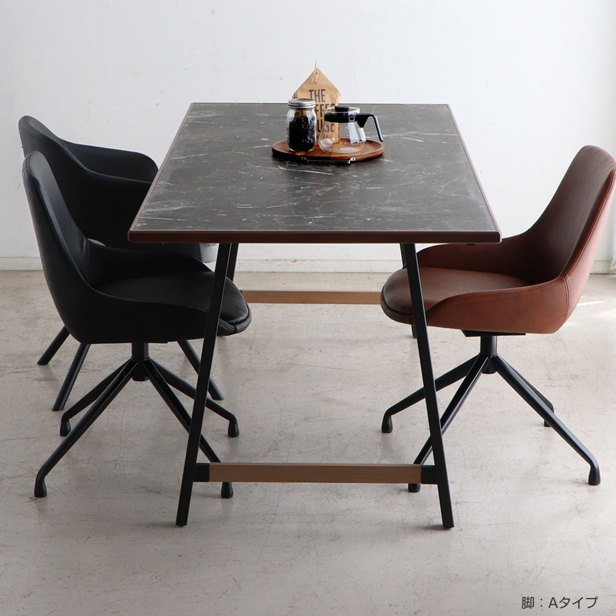 ブラック×ウォールナット: 深みのあるブラックは大理石の模様を際立たせ、シックで重厚感のある雰囲気を醸し出します。