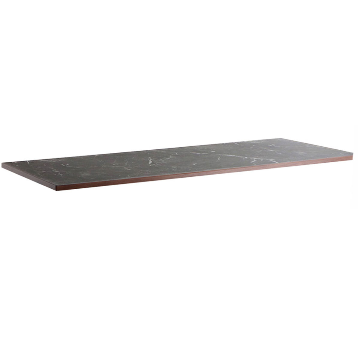 洗練された大理石調の天板と、温かみのある天然木の縁が調和し、空間に上質なアクセントを加えます。
