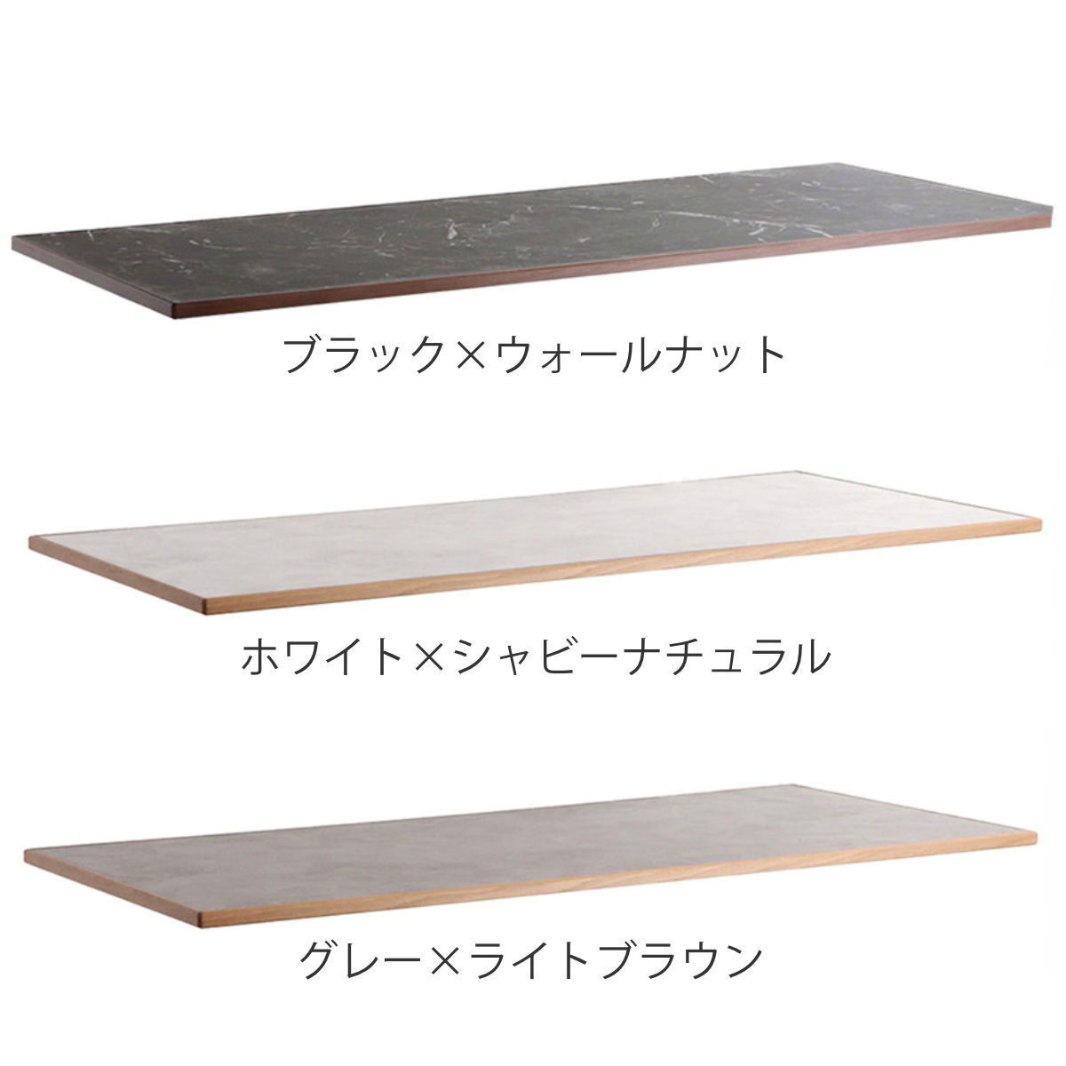 | 種類 | ブラック×ウォールナット、ホワイト×シャビーナチュラル、グレー×ライトブラウン |