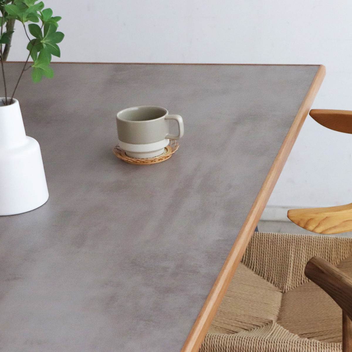 グレー×ライトブラウン: 洗練されたグレーの天板は、どんなインテリアにも馴染み、落ち着いた空間を演出します。