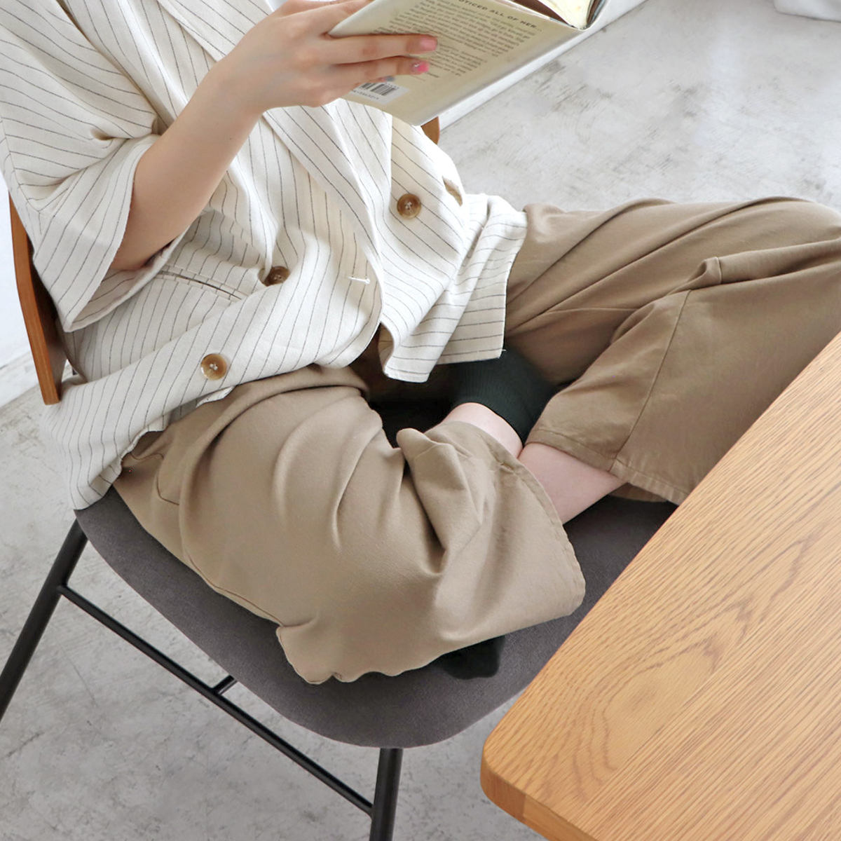 広めに設計された座面は、ゆったり快適。あぐらをかいても余裕があり、リラックスタイムに最適です。