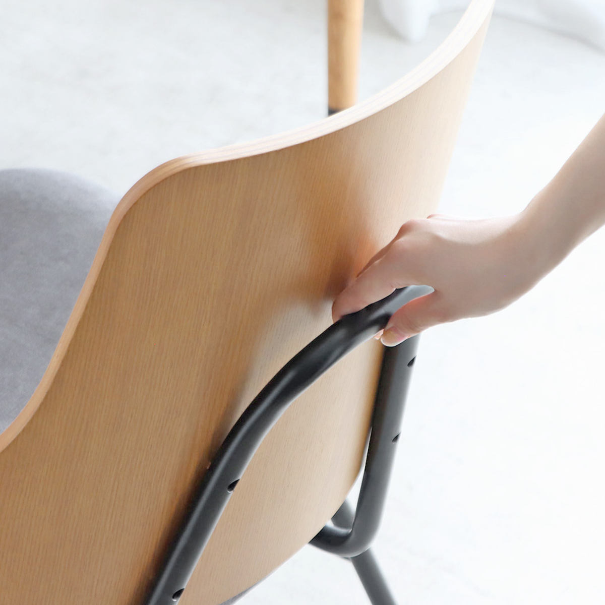 背面には手を掛けやすい持ち手付き。椅子の出し入れや移動もスムーズに行えます。