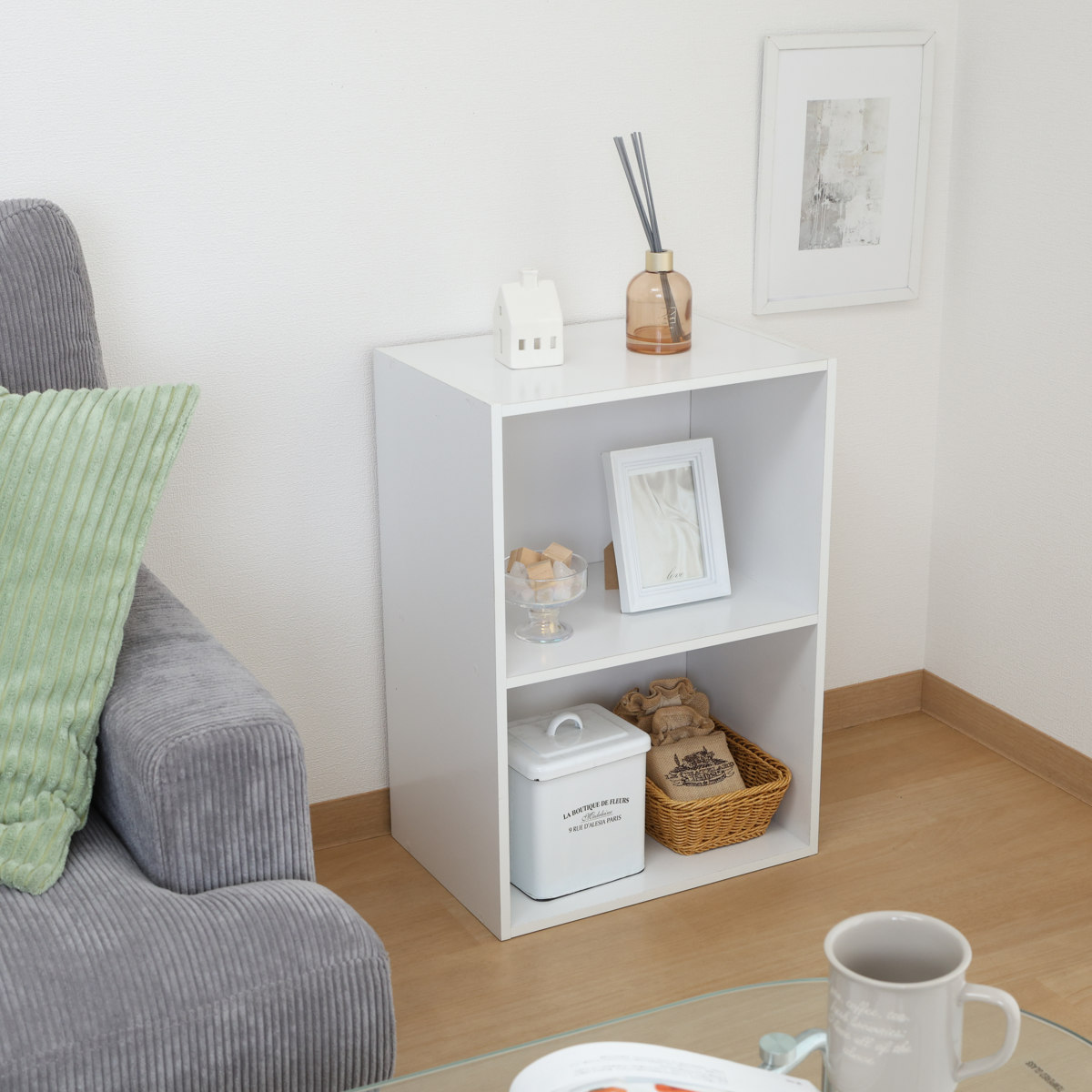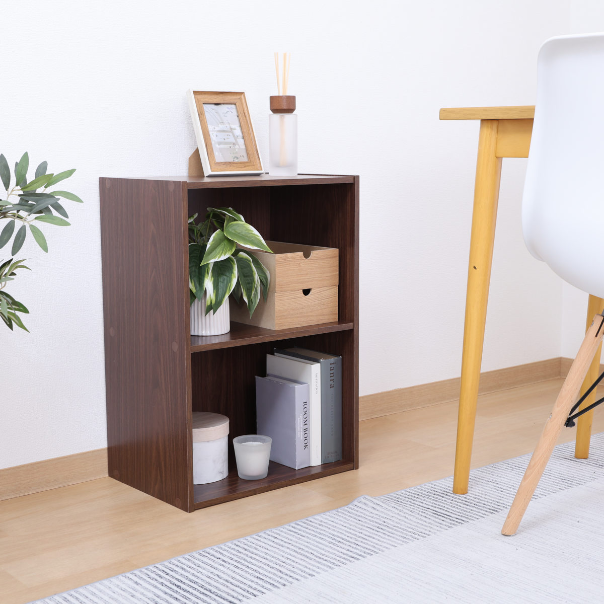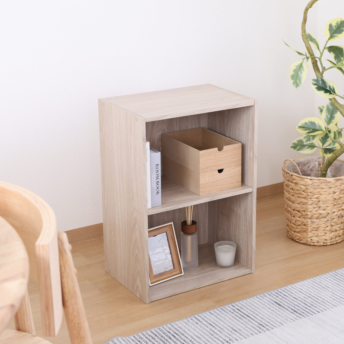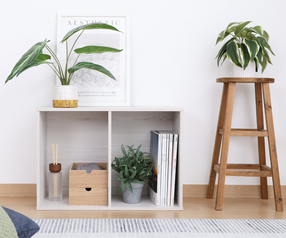 無駄のないシンプルなデザインで、使い勝手のよい2段タイプのカラーボックスです。、リビングや書斎、子ども部屋などさまざまな空間に自然になじみます。本やCDをまとめて収納したり、ディスプレイラックのように、飾りながら収納するのもおすすめです。