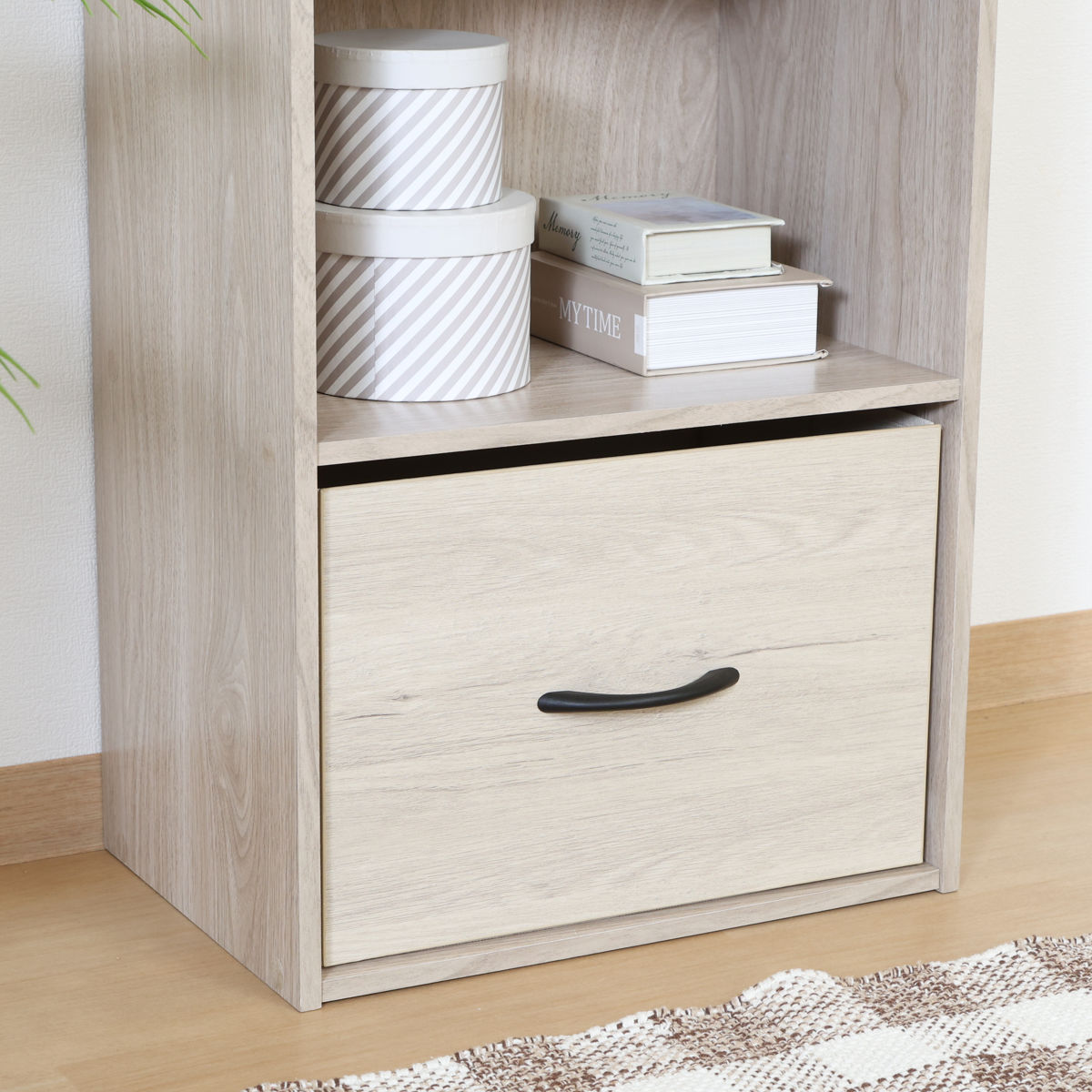天板部分には、お気に入りの雑貨やグリーンを飾ったり、鍵やアクセサリーなど、毎日すぐ手に取る物の定位置としても便利です。見せる収納と実用性を兼ね備えています。