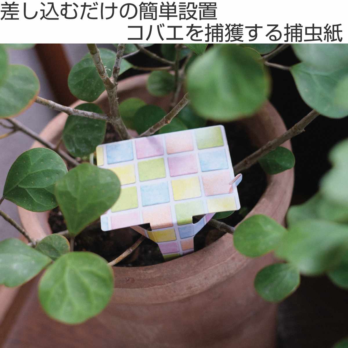 植木鉢まわりのコバエをしっかり捕獲する捕虫紙です。土に発生しやすいコバエをキャッチし、植物まわりを清潔に保ちます。