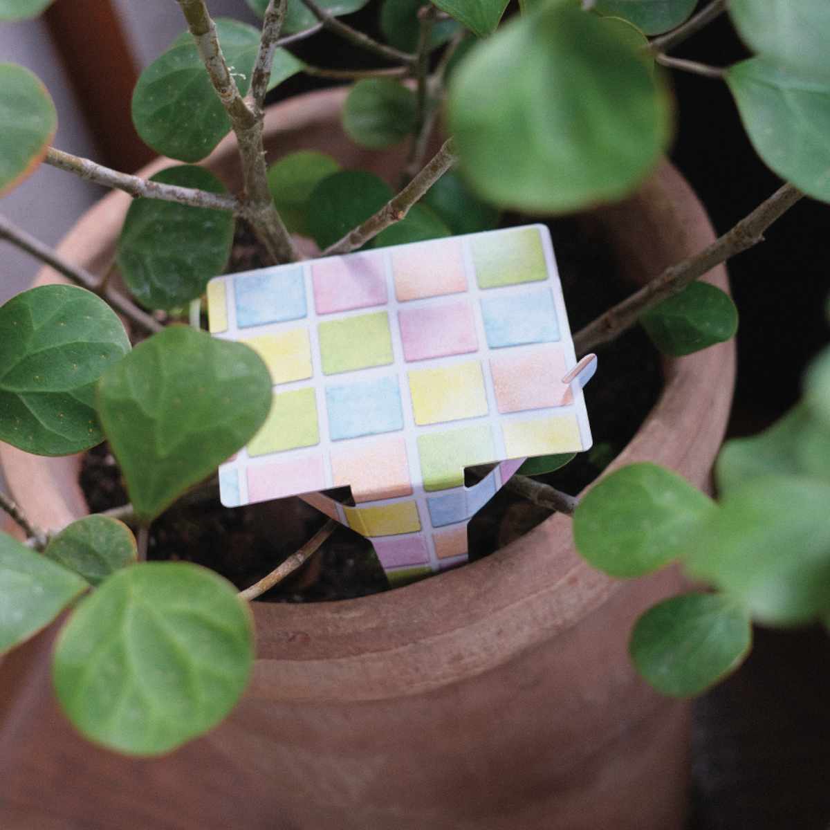 環境にやさしい紙製で、リビングやベランダなど観葉植物がある場所にもなじみます。耐水性のある紙を使用しているため、水やりの際に水がかかりやすい場所でも使用できます。