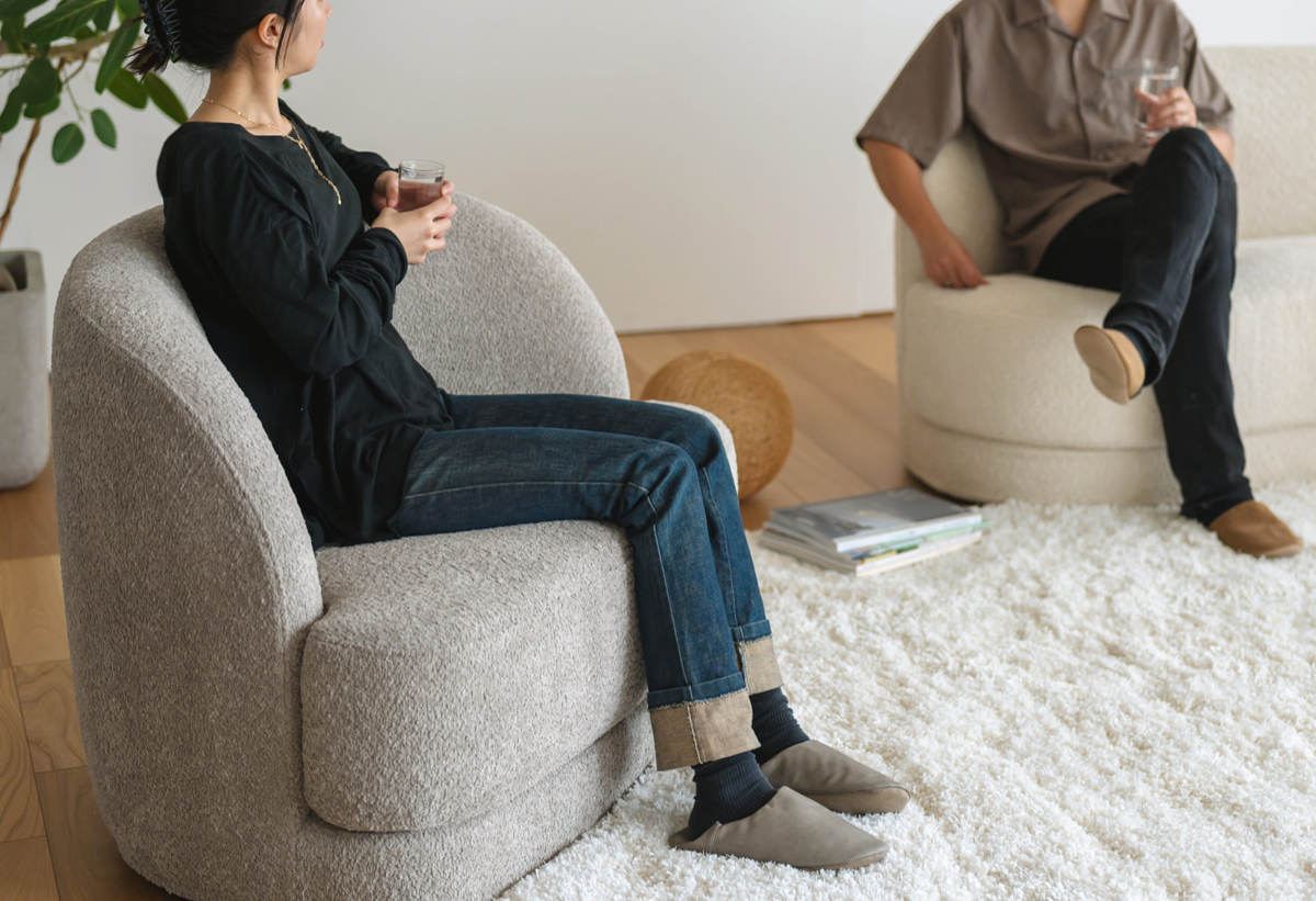 立体的な生地と曲線のフォルムが空間に調和をもたらすソファ