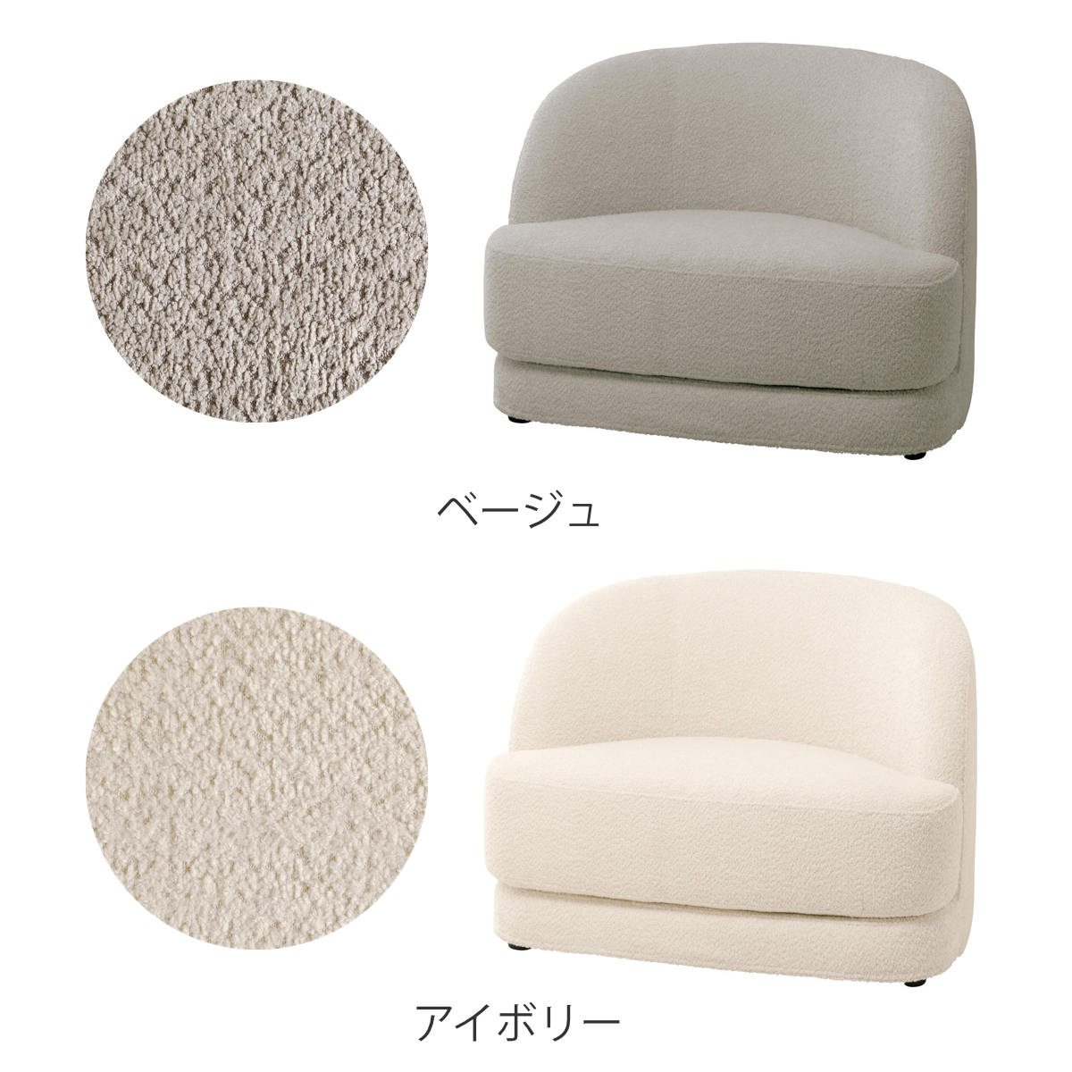 立体感のあるブークレ調生地と曲線デザインが心地よいソファ