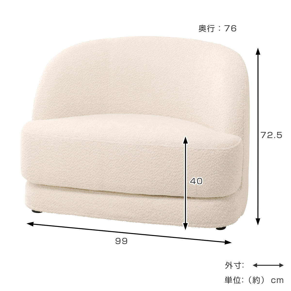 | サイズ | 約 幅99×奥行76×高さ72.5(cm) 座面高:約 40(cm) |