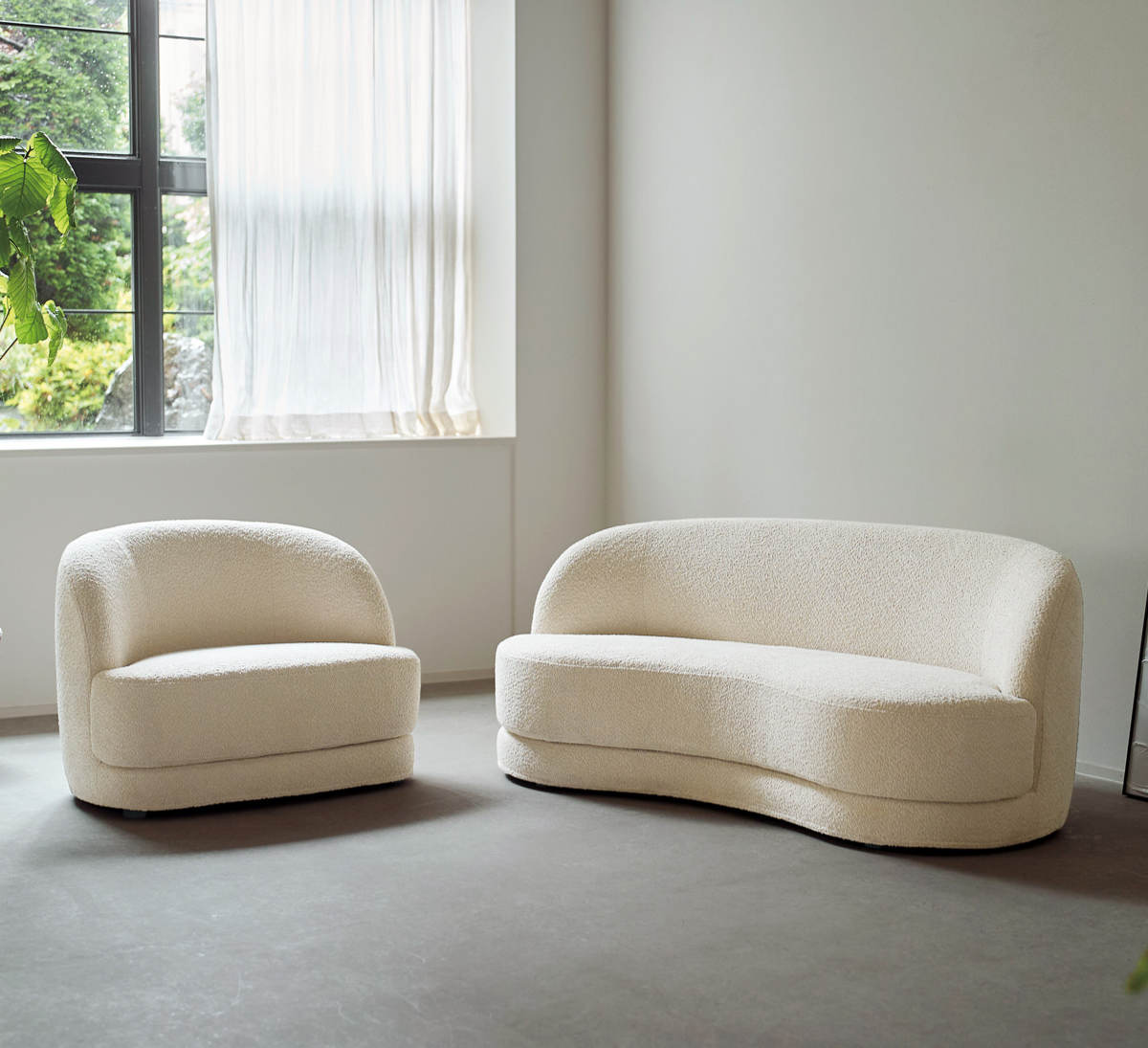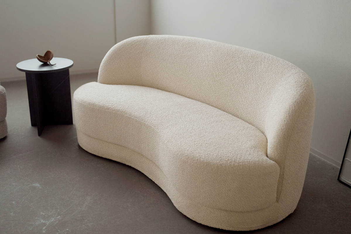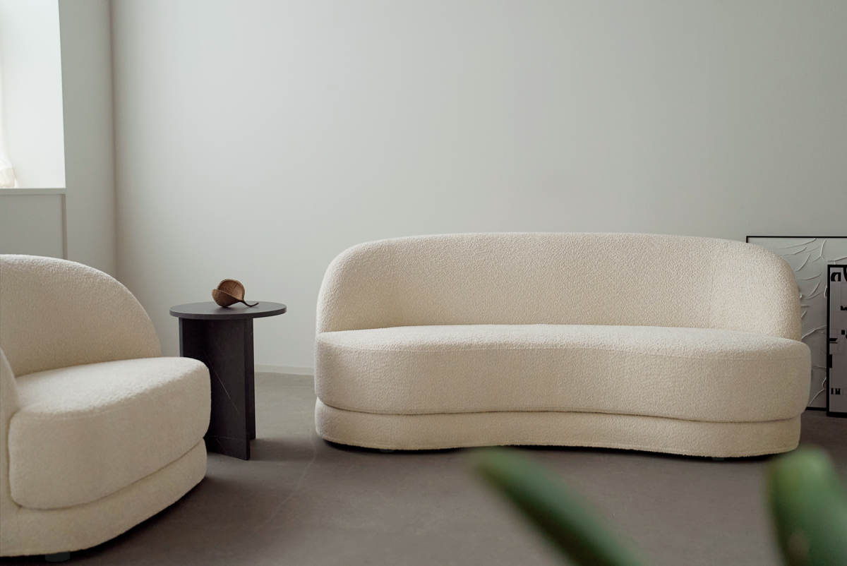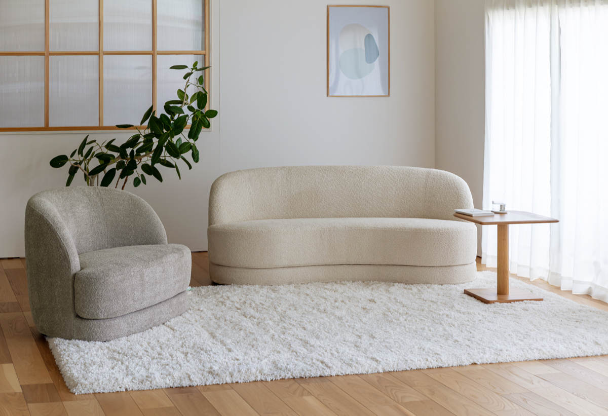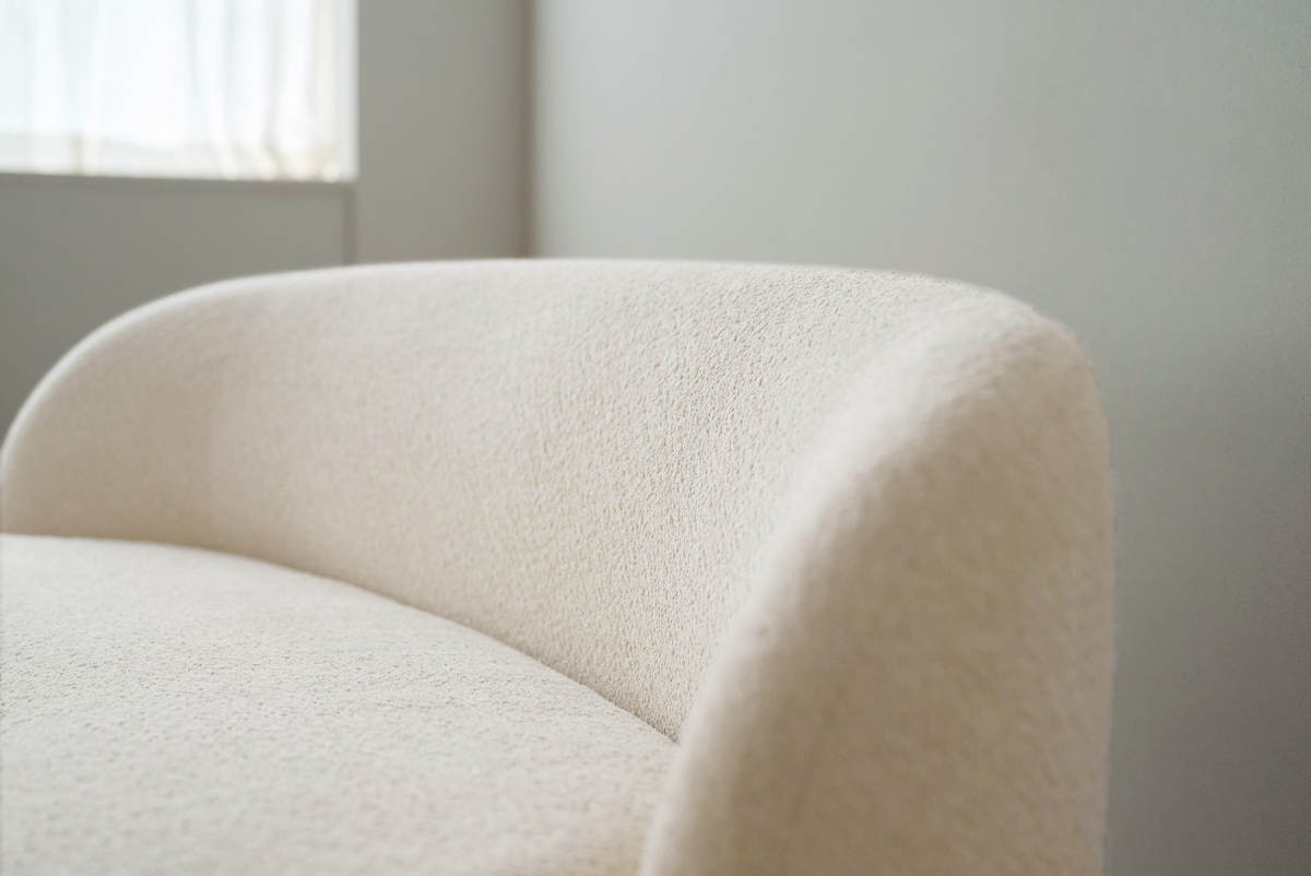 立体感のあるブークレ調生地と曲線デザインが心地よいソファ