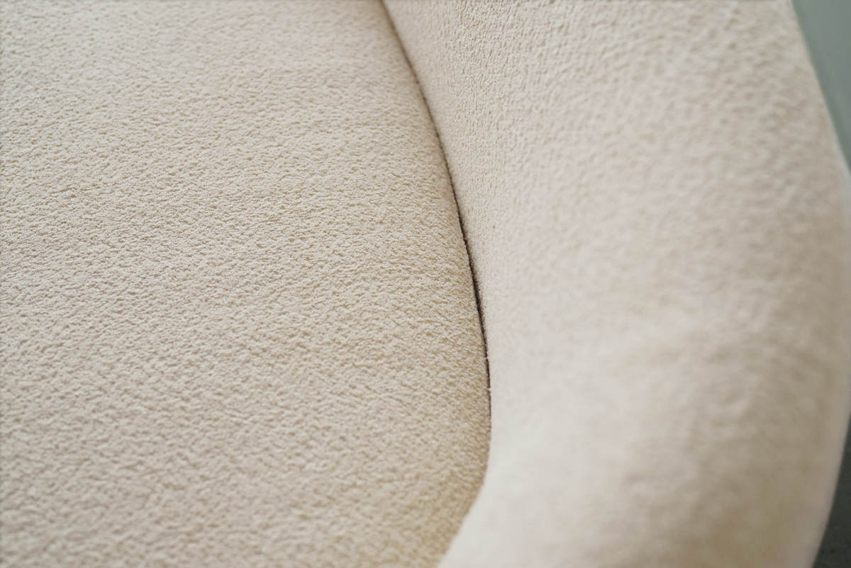 小さなループ状の糸を編んで作られるブークレ調生地。独特のふんわりとした質感が、曲線のフォルムを際立たせます。モダンなデザインでありながら、起毛によって柔らかな印象も与えます。背面まで贅沢に使用し、どこから見ても美しい仕上がりです。