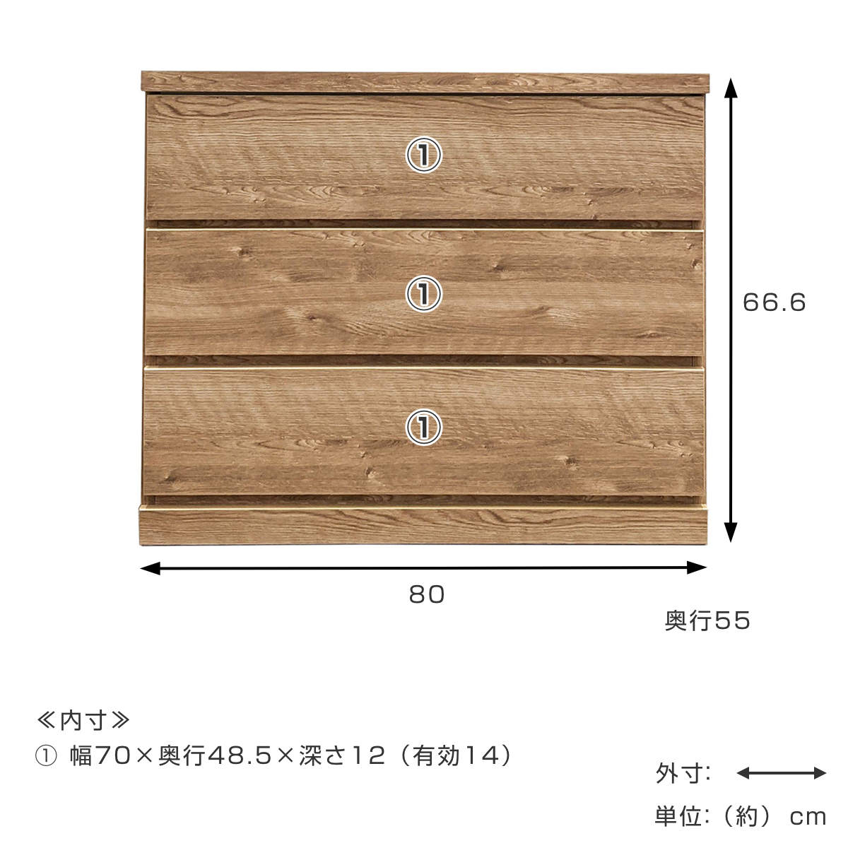- 約幅80×奥行55×高さ66.6cm
