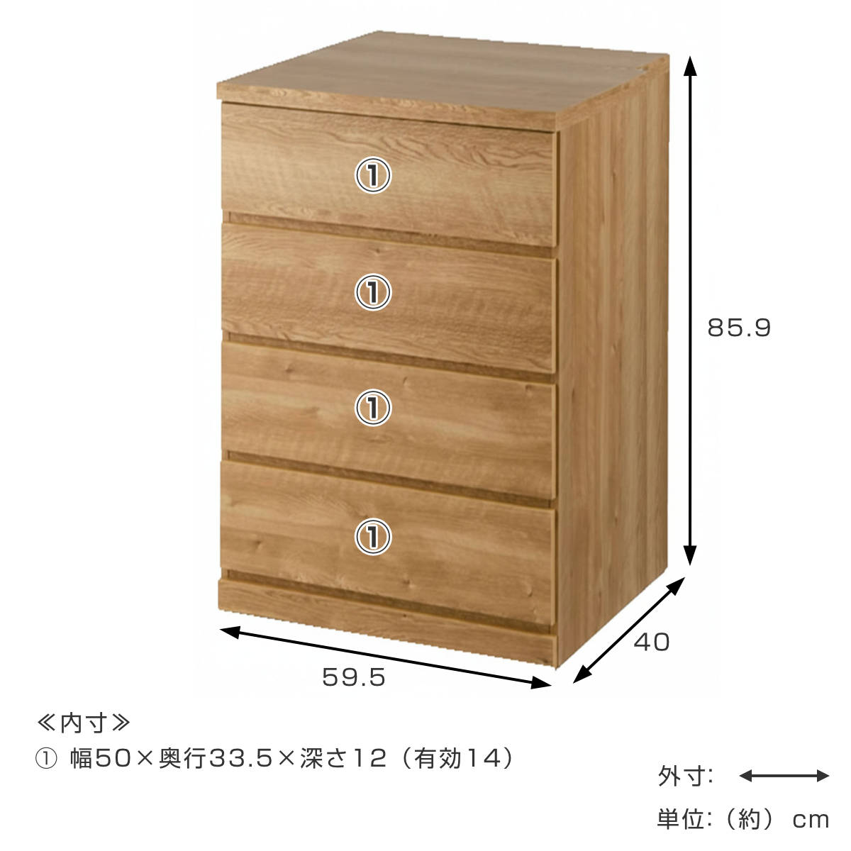 ![]() チェスト 3段 幅59.5×奥行40cm | ![]() チェスト 4段 幅59.5×奥行40cm 【▲このページの商品】 | ![]() チェスト 3段 幅80×奥行40cm |