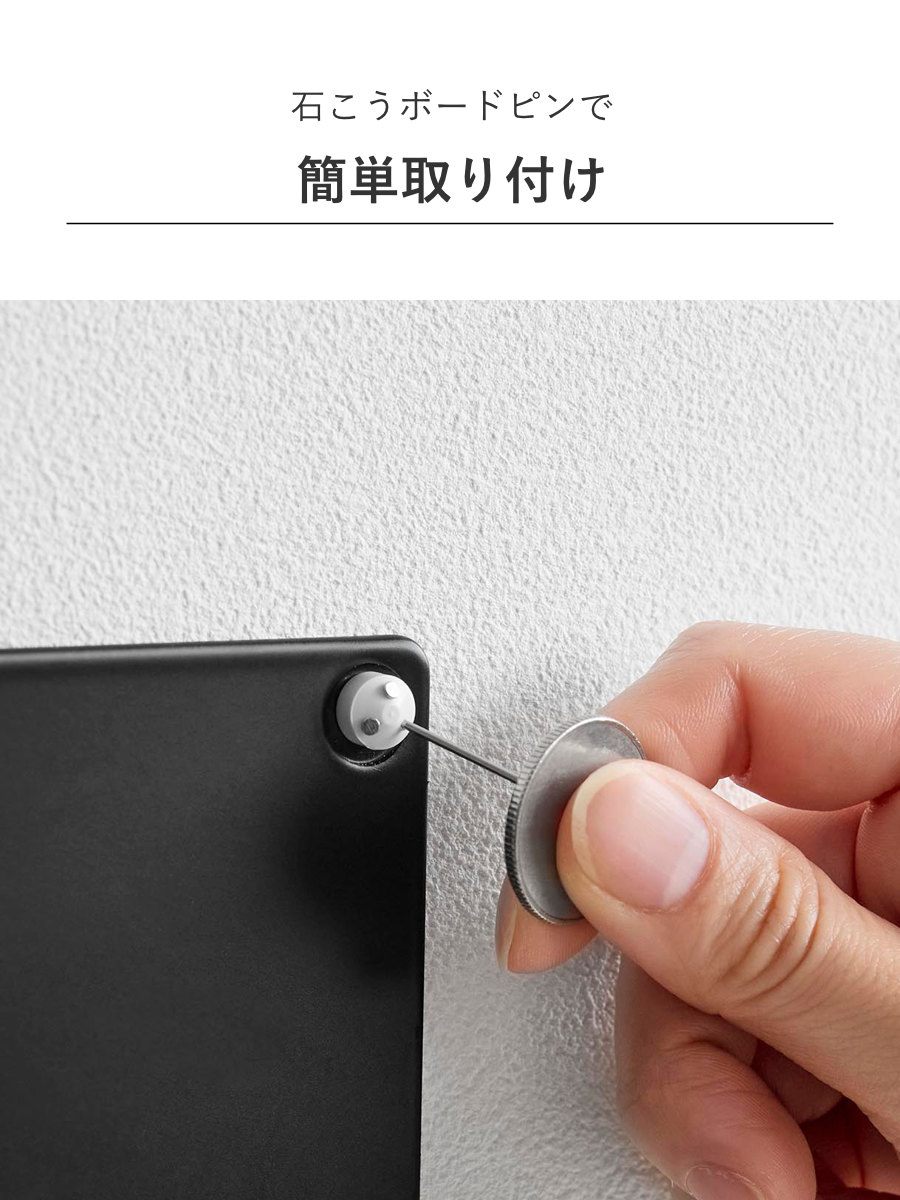 石こうボードピンを使用するため、壁の穴が目立ちにくく、賃貸住宅でも使いやすい仕様です。