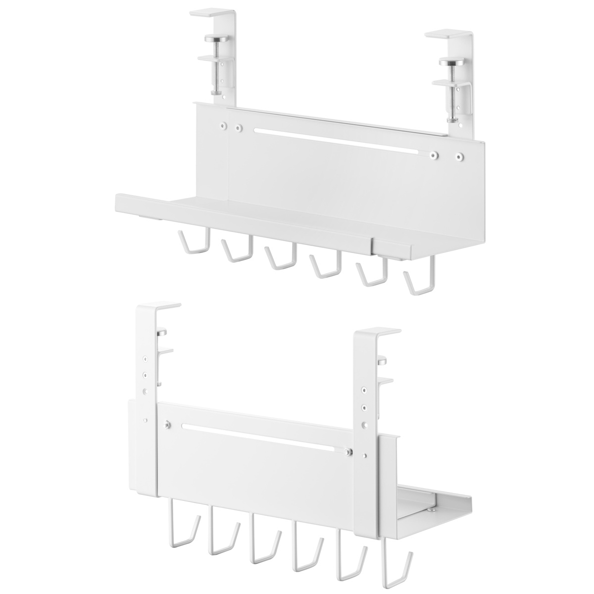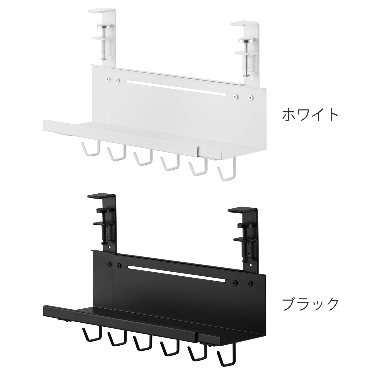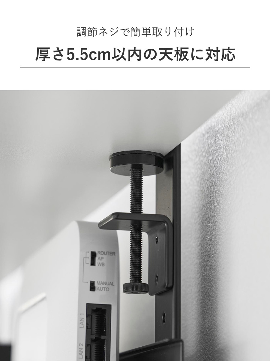 | 備考 | 【取り付け可能な場所】 天板の厚さが1~5.5cm(幕板やパイプ等含む) 幅37cm以上(脚含まず) 奥行4.5cm以上 天板下の高さ26.3cm以内に干渉する柱や脚などがない平らなデスク等 ※設置場所の構造や材質、形状によっては取り付けできない場合があります。 |