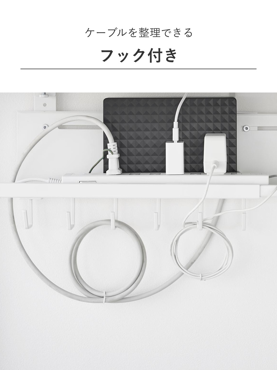 余ったケーブルを束ねて整理できる便利なフック付きです。