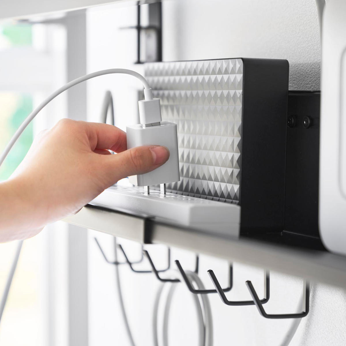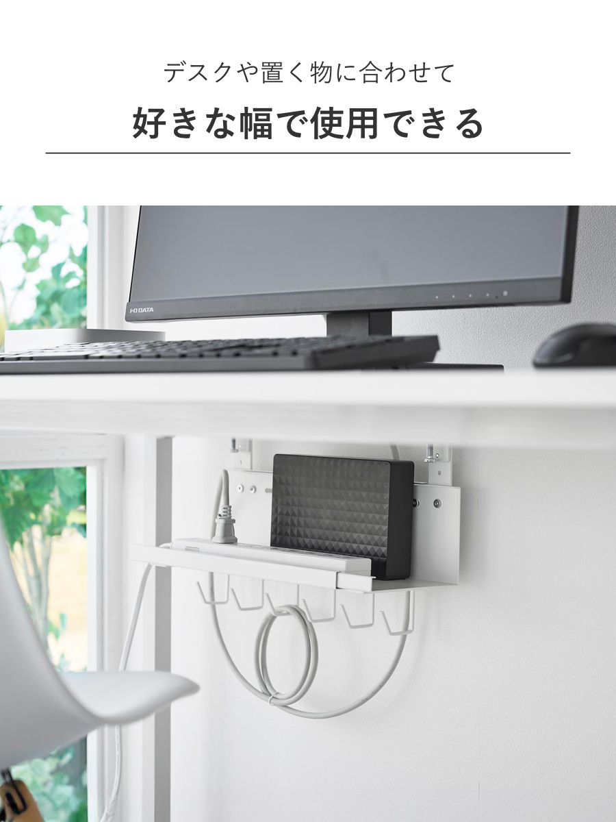 幅が伸縮するので、お使いのケーブルタップやデスクに合わせて好きなサイズで使用できます。