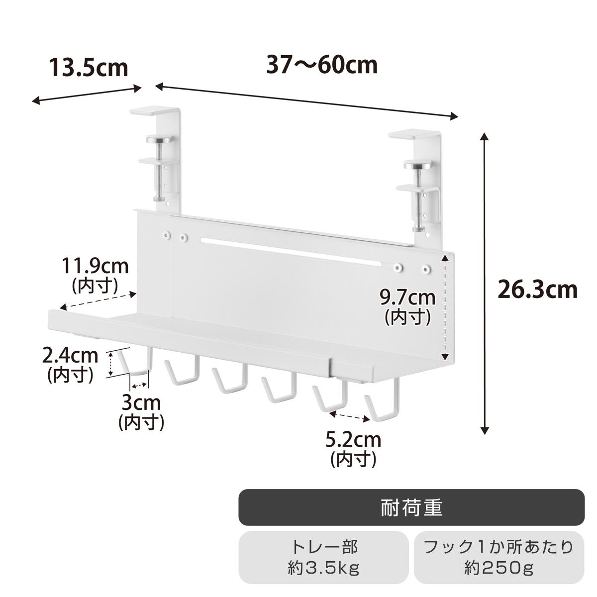 | 耐荷重 | トレー部:約 3.5kg フック1か所あたり:約 250g(静止荷重) |
