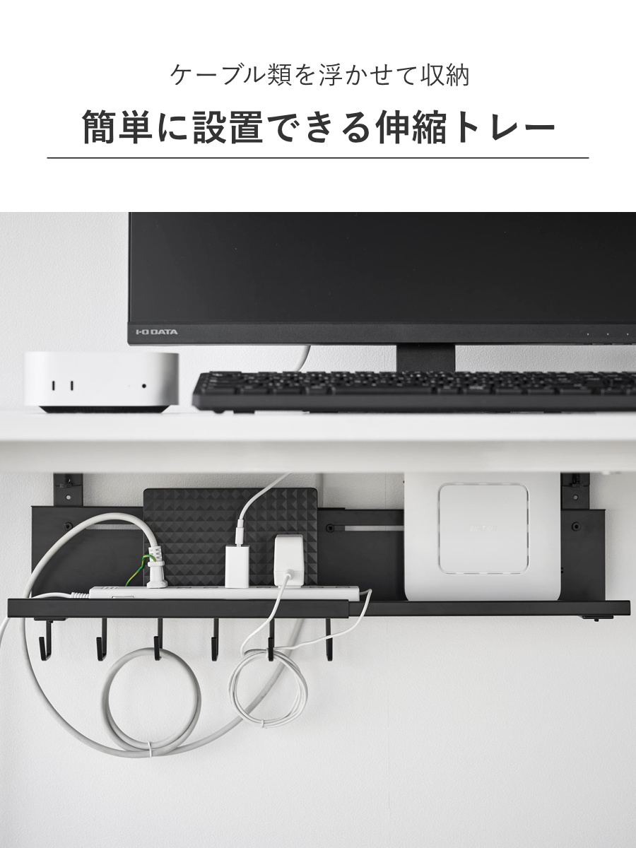 ケーブル類をすっきり!デスク下伸縮トレー