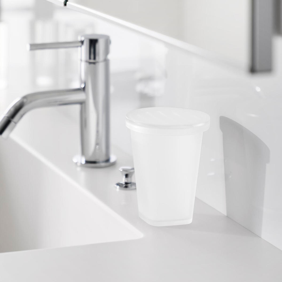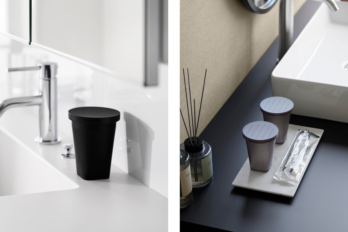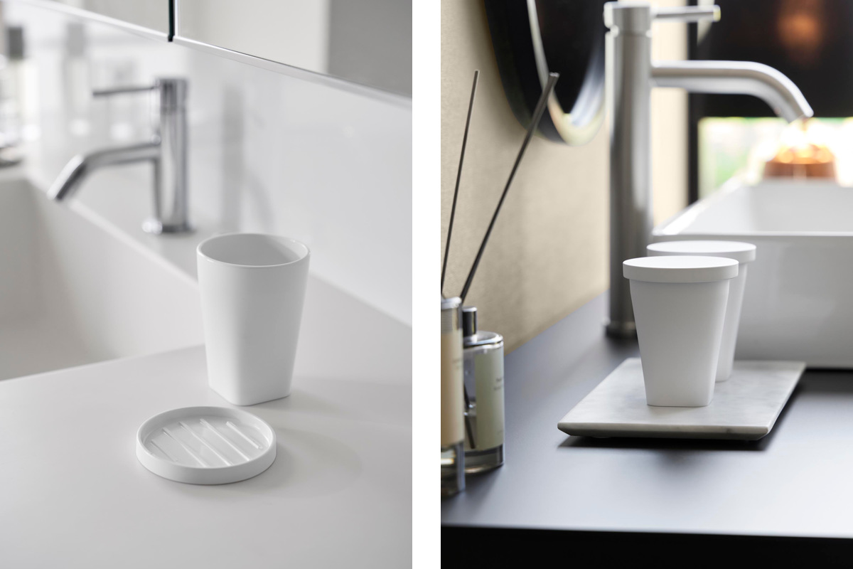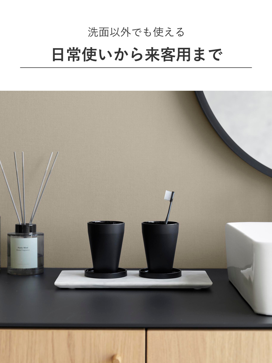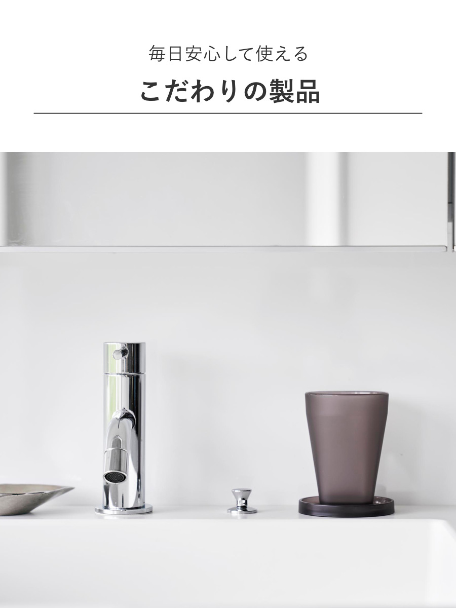 丈夫で熱に強く、割れにくいシンプルで清潔感のあるタンブラーです。どんなインテリアにも溶け込み、いつものパウダールームをホテルのようなスタイリッシュな空間に演出してくれます。
