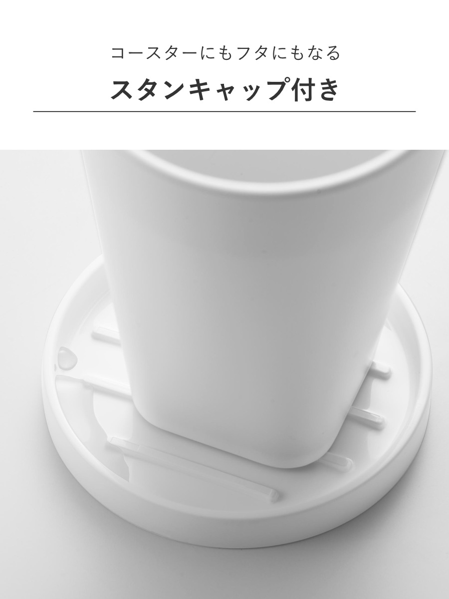 コースターやフタとして使えるスタンキャップ付きです。使わない時はフタをしてホコリの侵入を防いで清潔な状態を保てます。