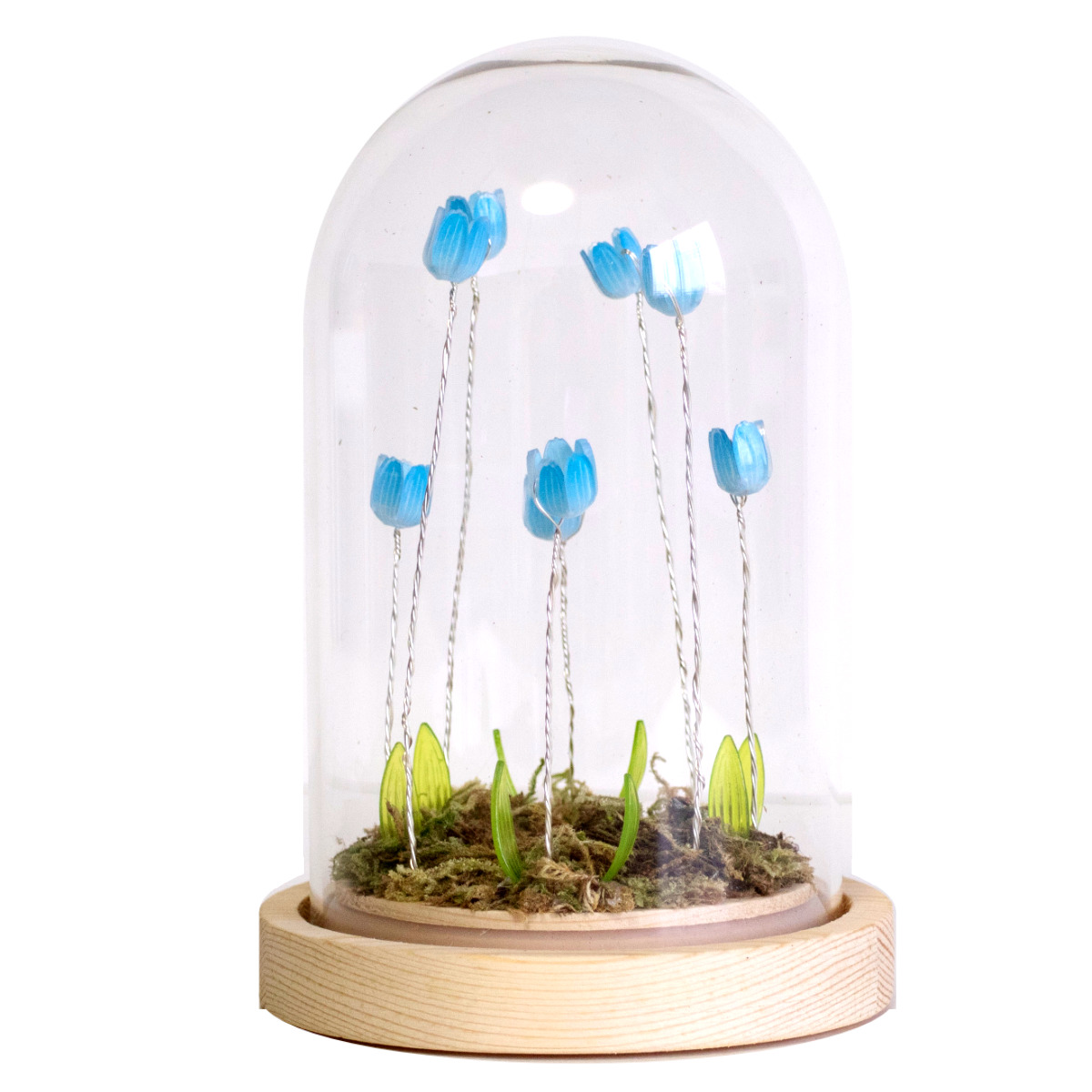 繊細なチューリップのフォルムが、やさしい光に包まれるLEDオブジェ。ガラスドームをかぶせることで、ほこりを防ぎながら上品で特別感のある雰囲気を演出します。