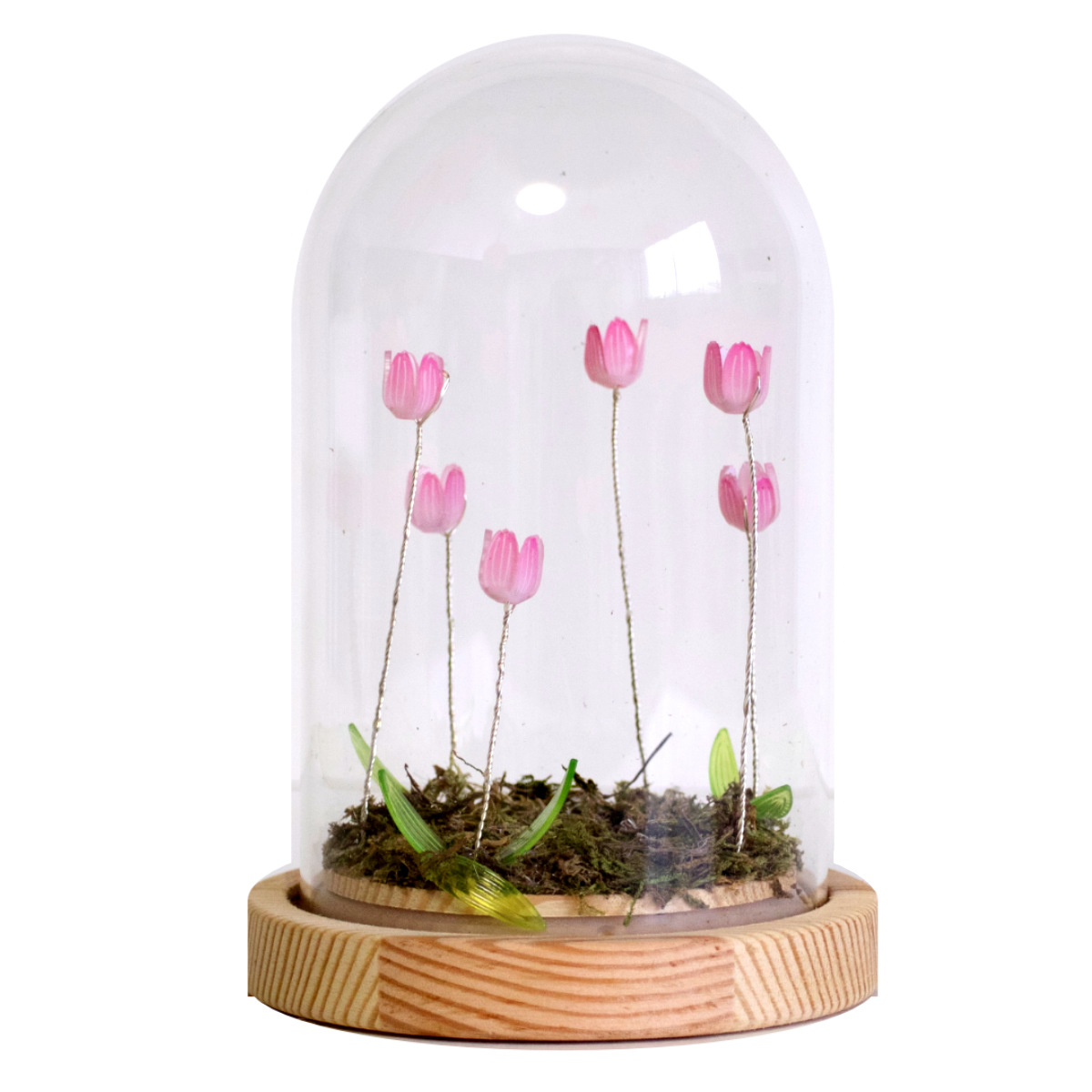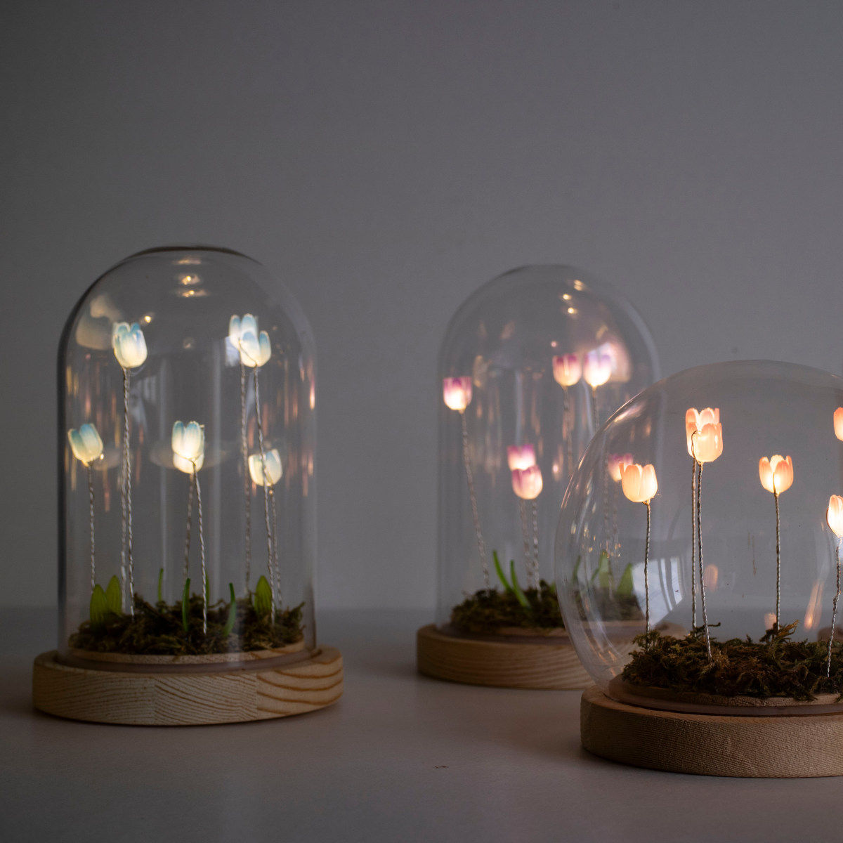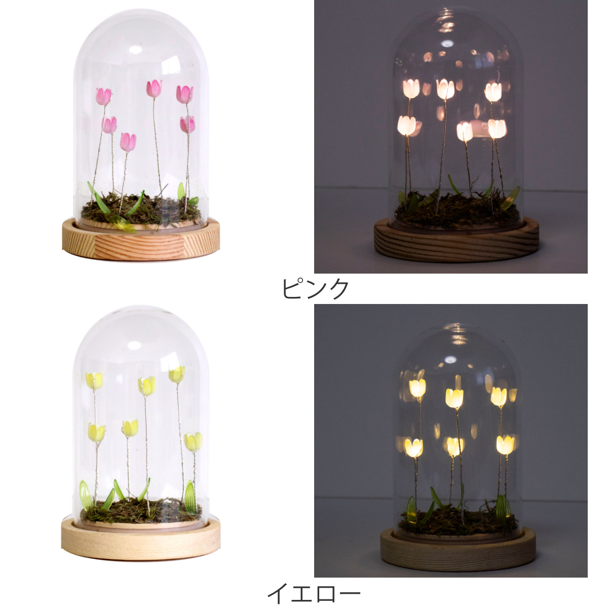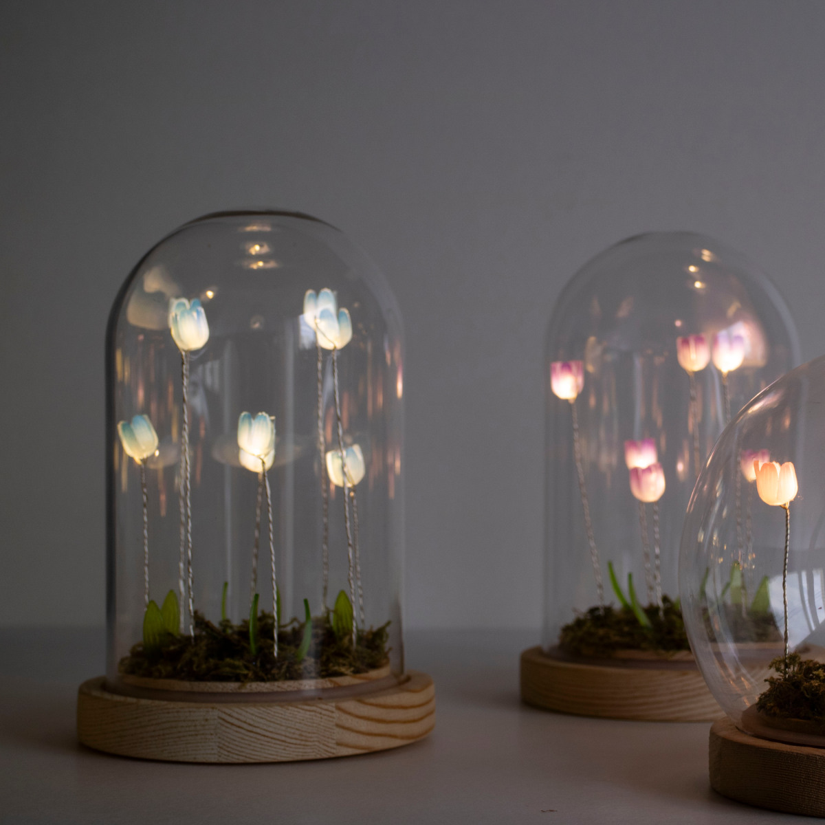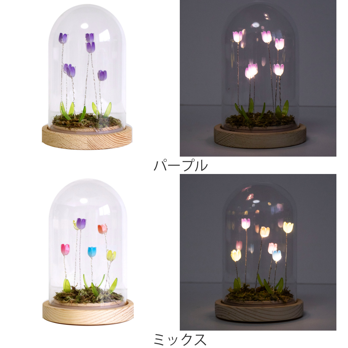 ガラスドームに咲く癒しのチューリップLEDランプ