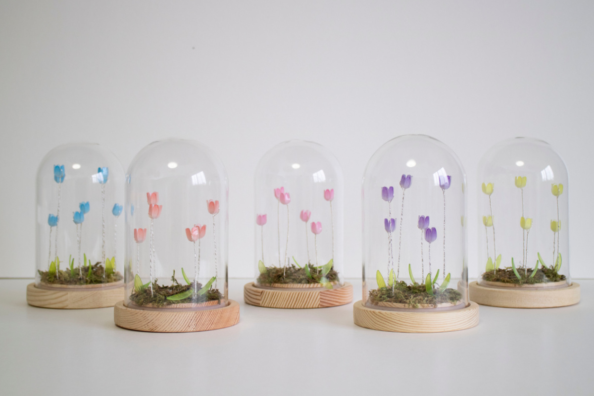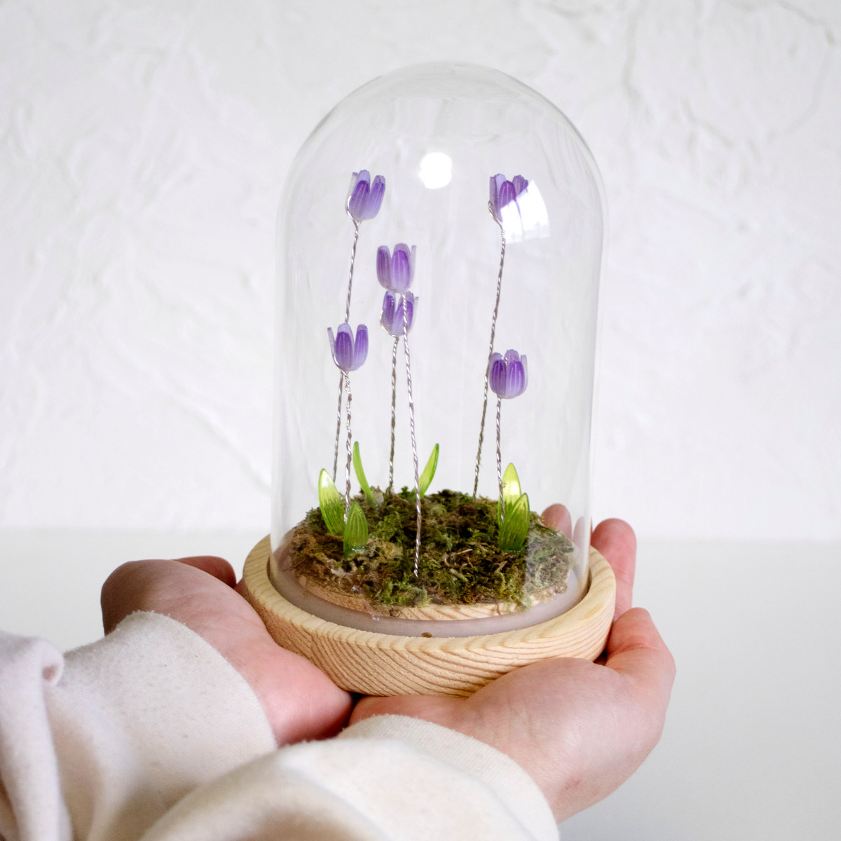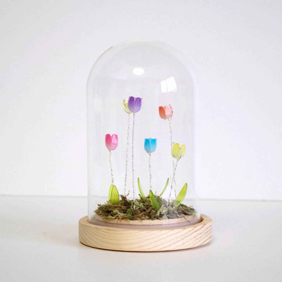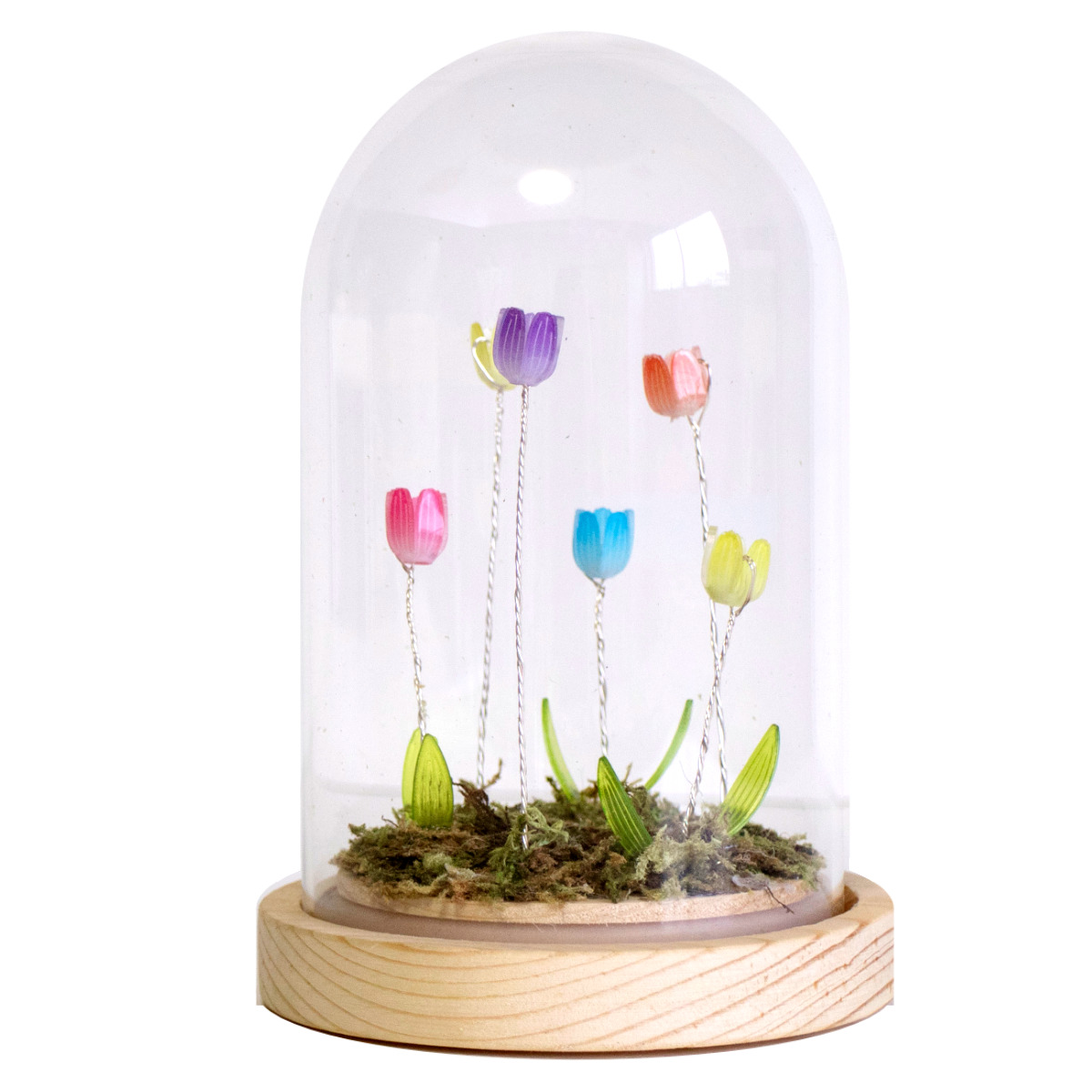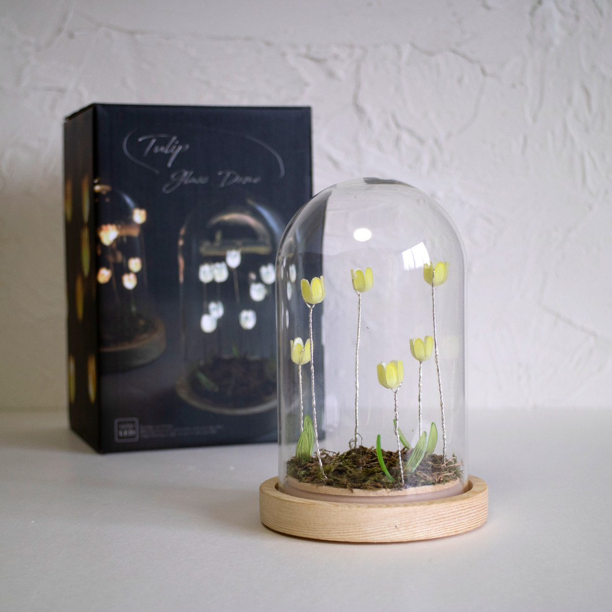 ガラスドームに咲く癒しのチューリップLEDランプ