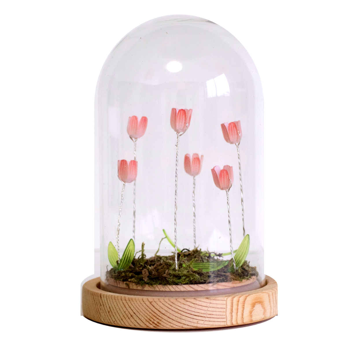ガラスドームに咲く癒しのチューリップLEDランプ