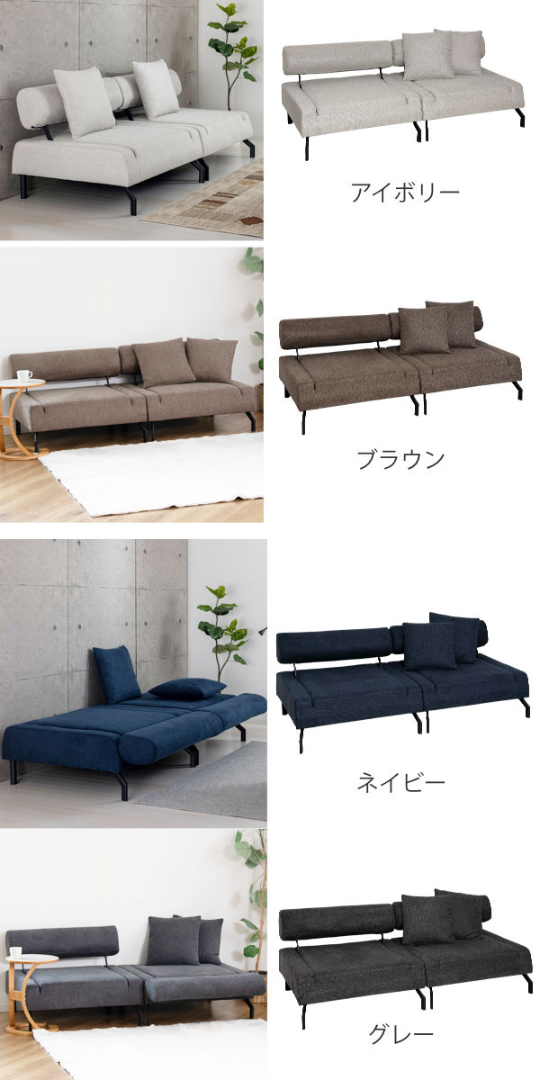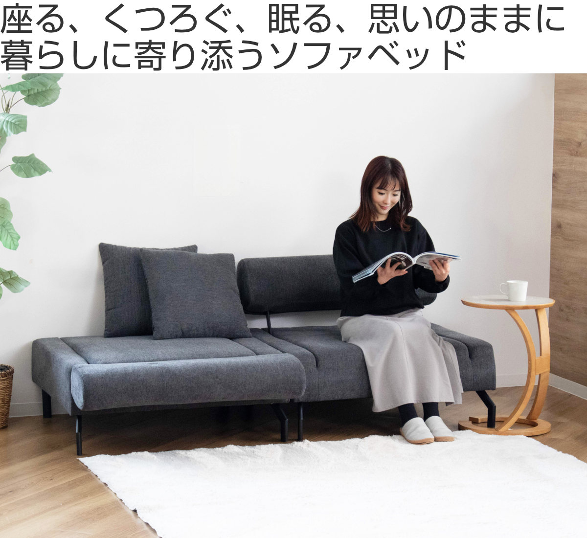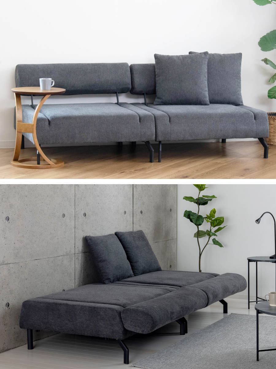 ソファ・ベッド・セパレートの3スタイルを叶える、シンプルでモダンなソファベッド。2台並べれば約189cmのロングサイズに、分割すれば1人掛けソファとしても使え、シーンに合わせて自在にアレンジできます。