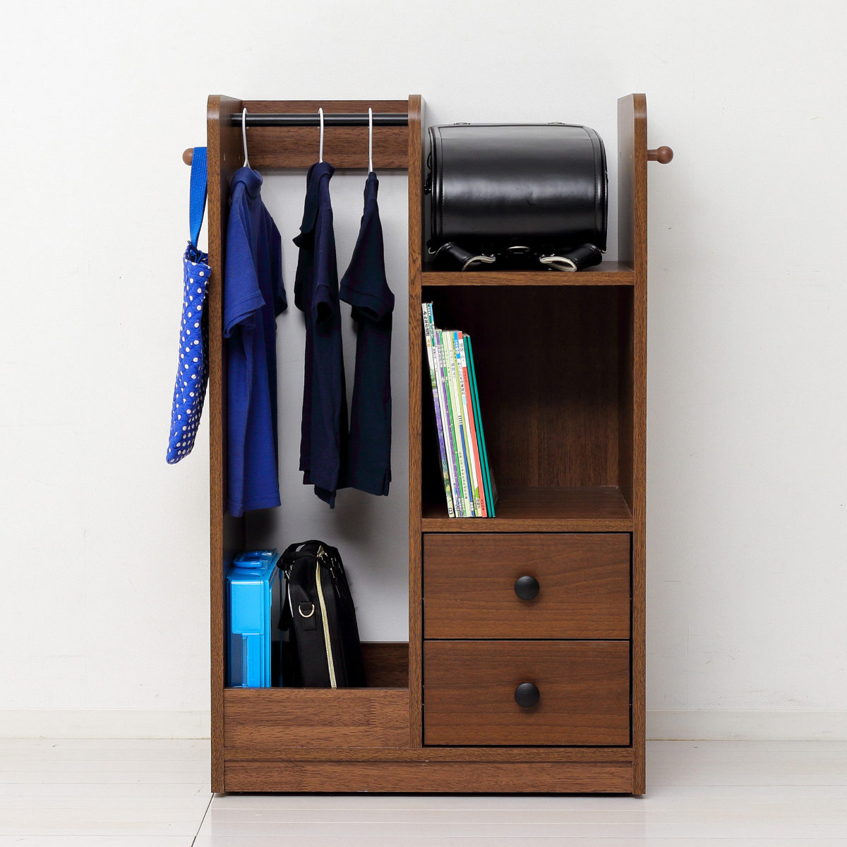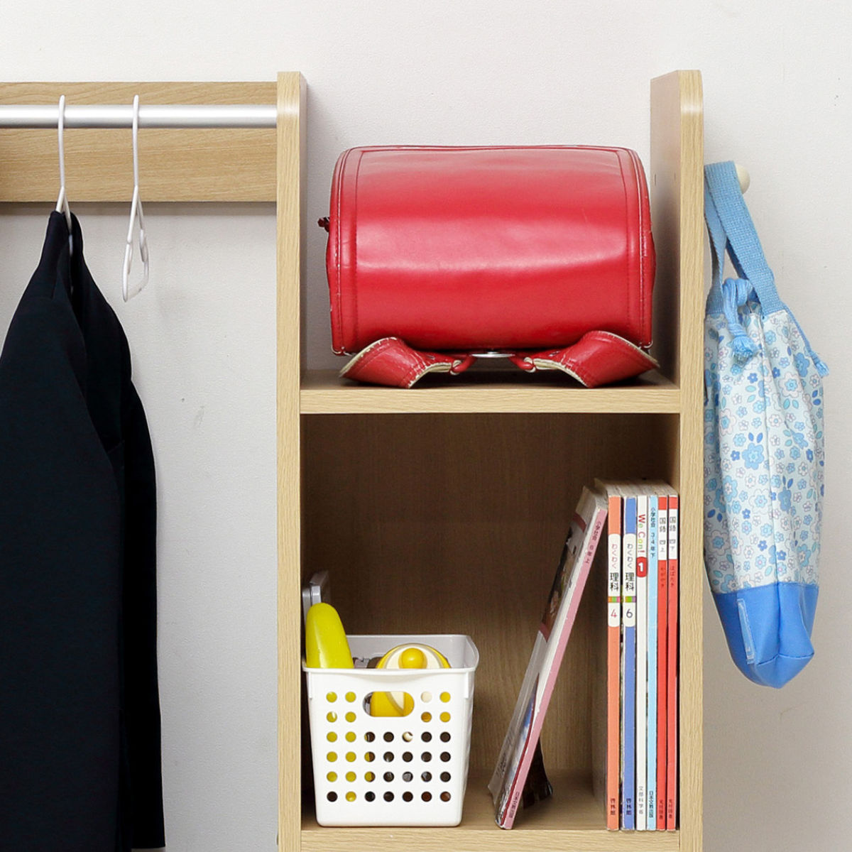 ランドセルや教科書、制服など登校に必要なものをまとめて収納できるランドセルラック。ハンガーや引き出し、フック付きで準備も片づけもスムーズです。定位置が分かりやすく、片づけ習慣や忘れ物防止にもつながります。