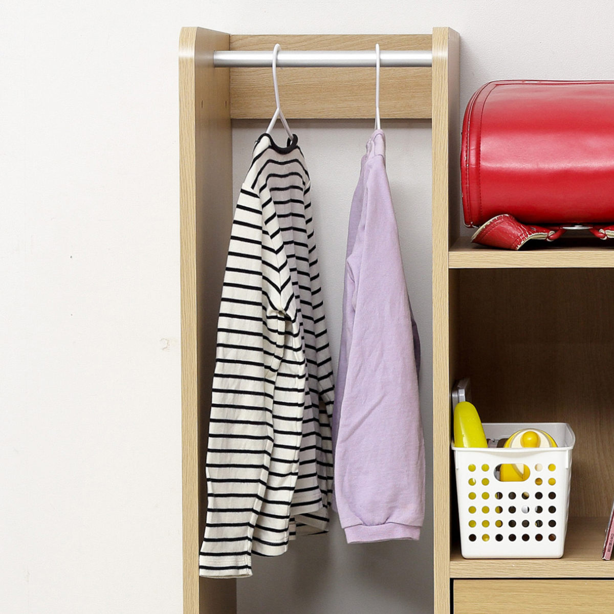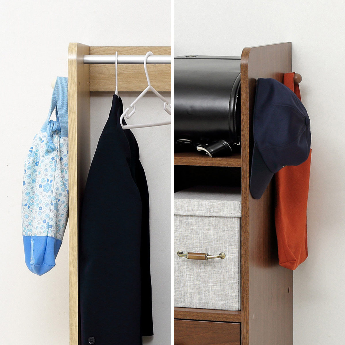 ●ハンガー付きで上着や制服を帰宅後すぐに掛けられ、散らかりにくく身支度も楽になります。