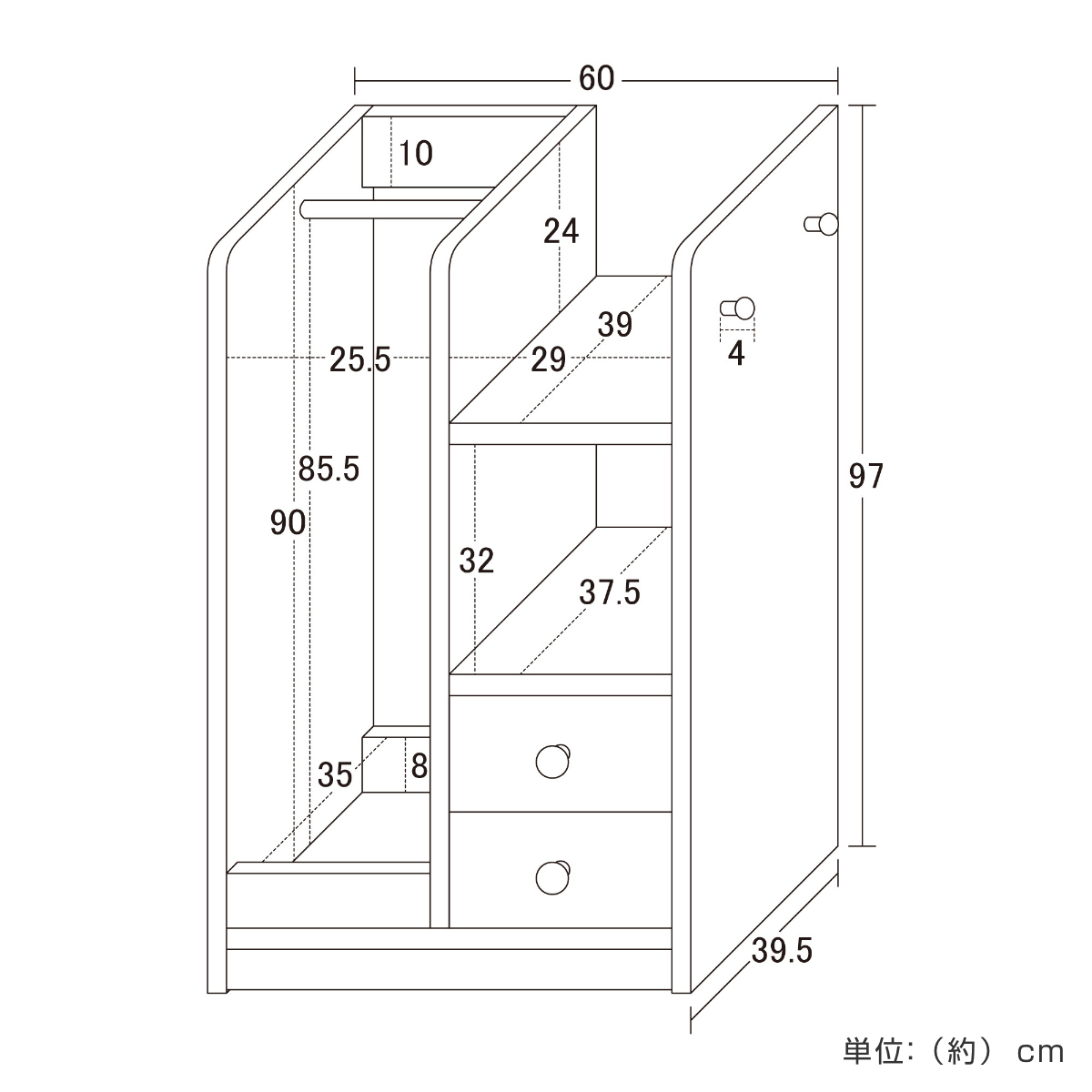 | サイズ | 約 幅60×奥行39.5×高さ97(cm) |