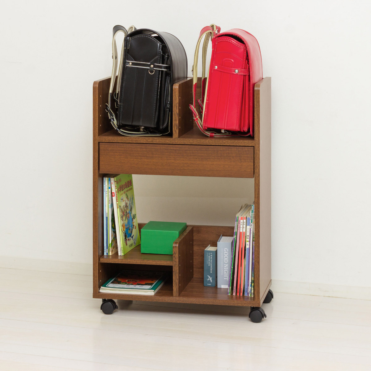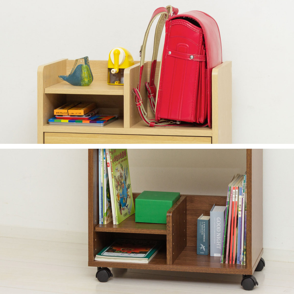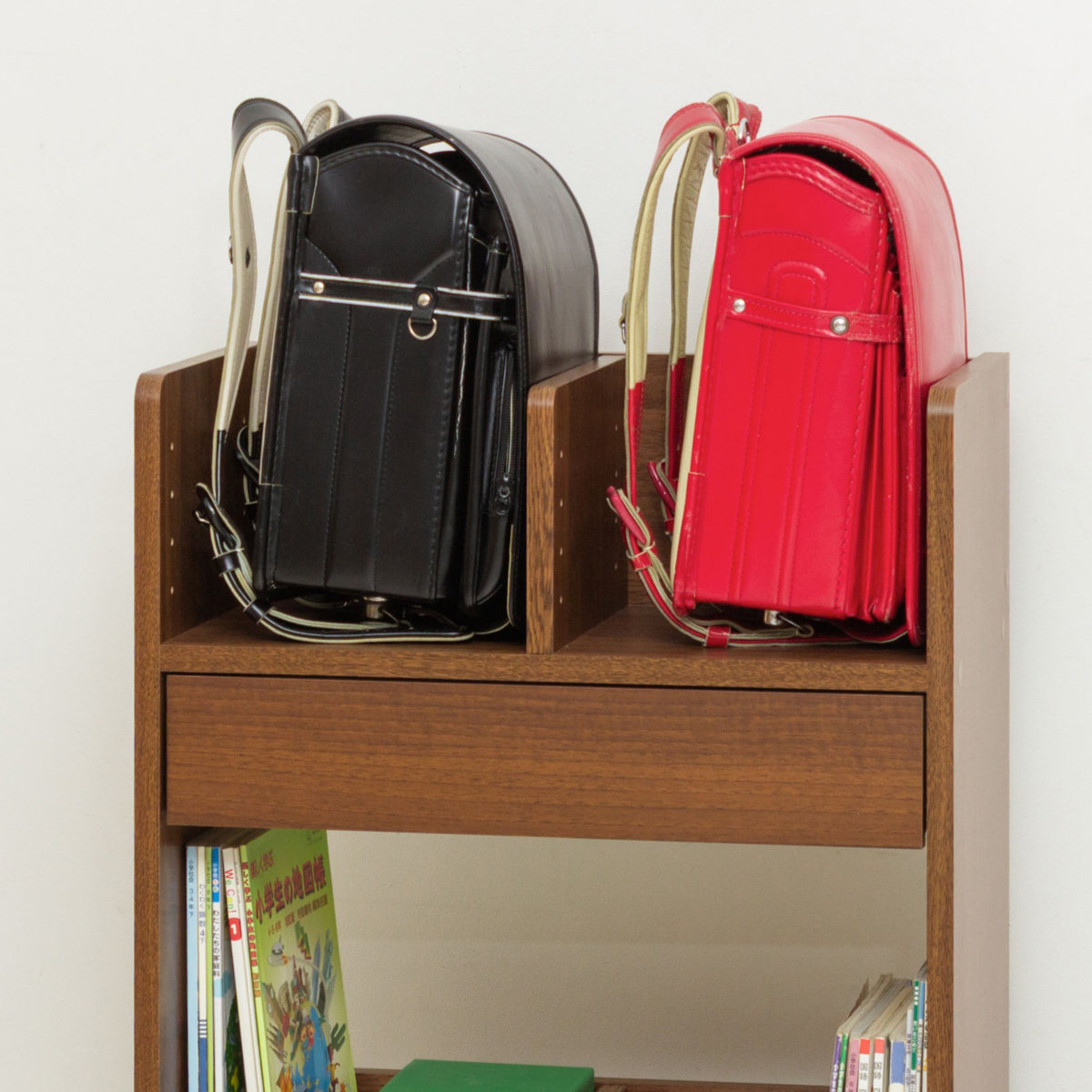 ●可動棚を外せばランドセルを2個置けて、兄弟姉妹での使用にも対応できます。