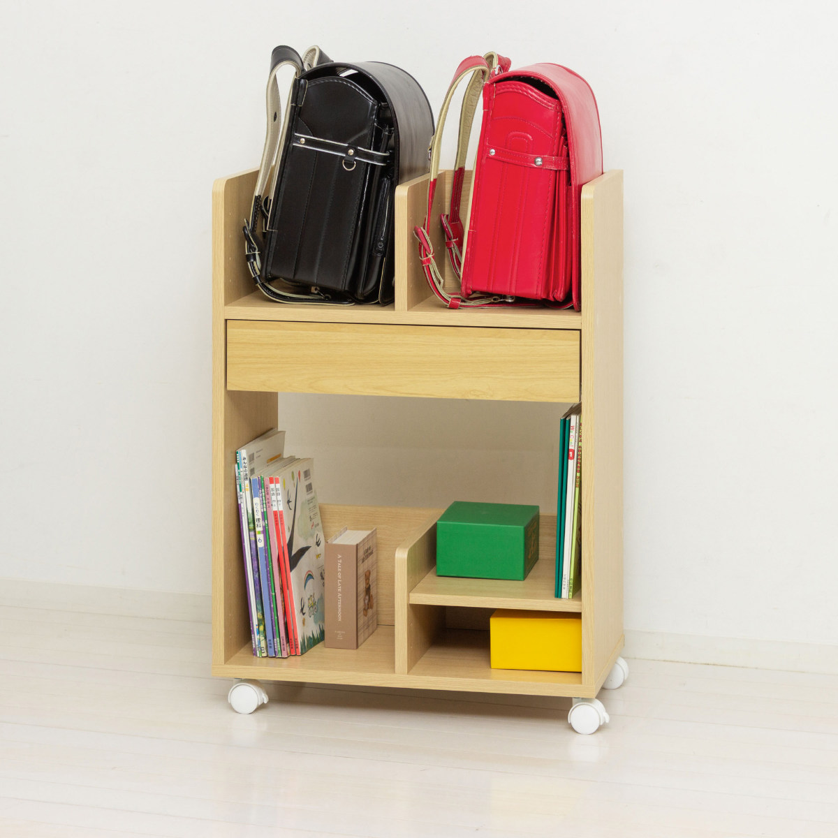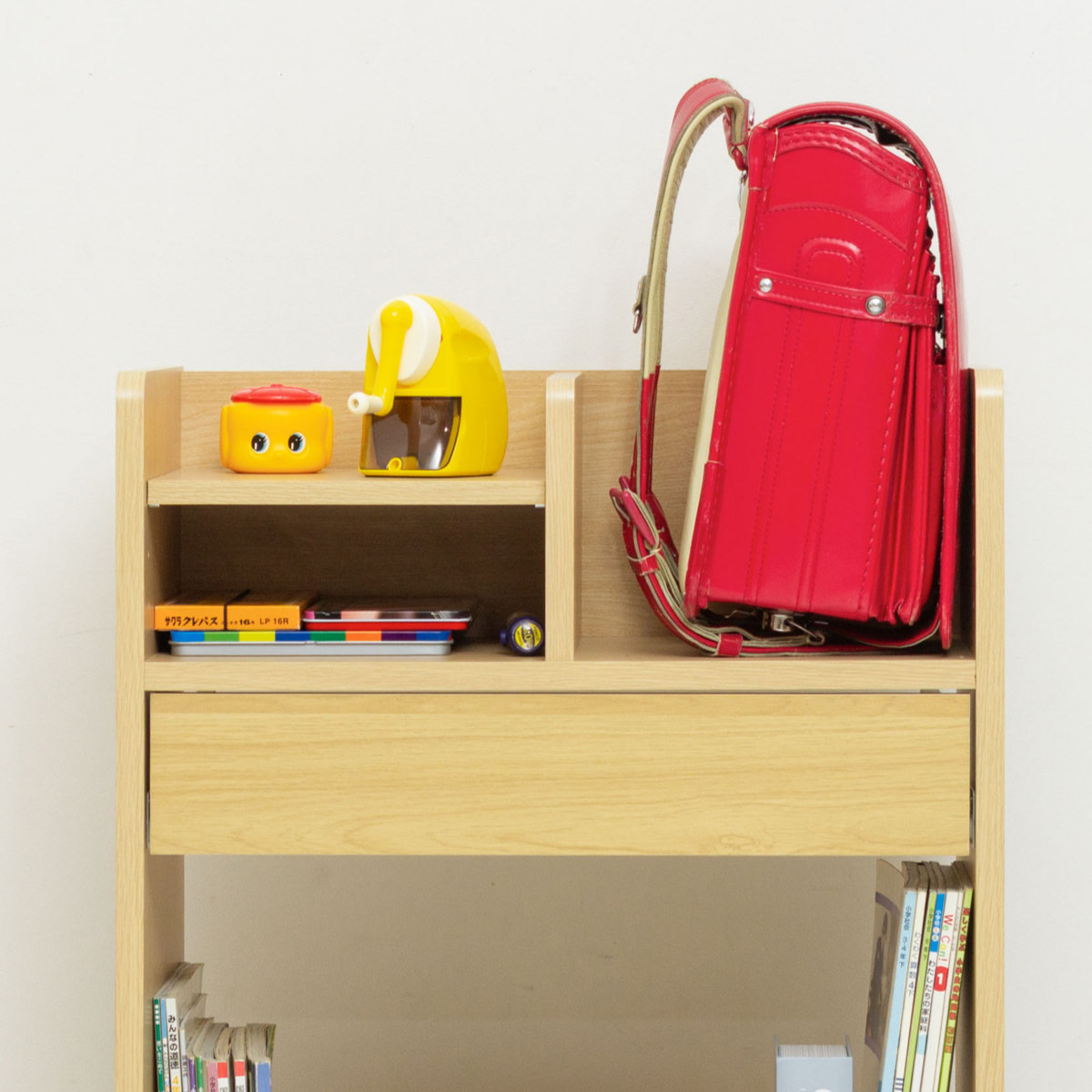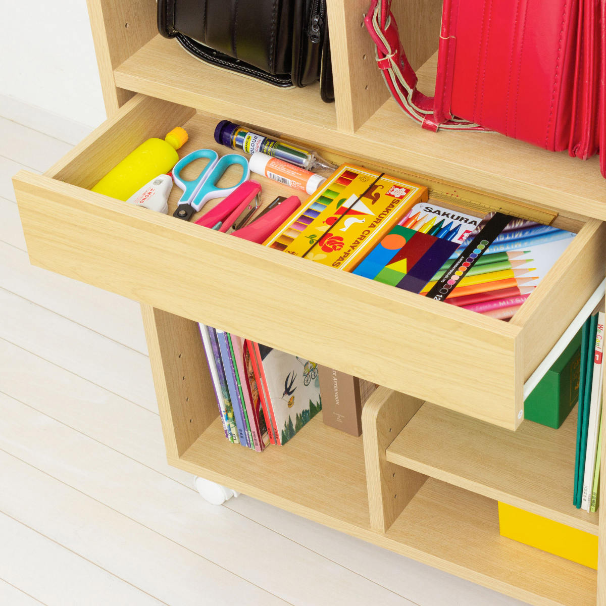 ●ランドセルや教科書、文具類をまとめて収納でき、登校準備と片づけがスムーズになります。
