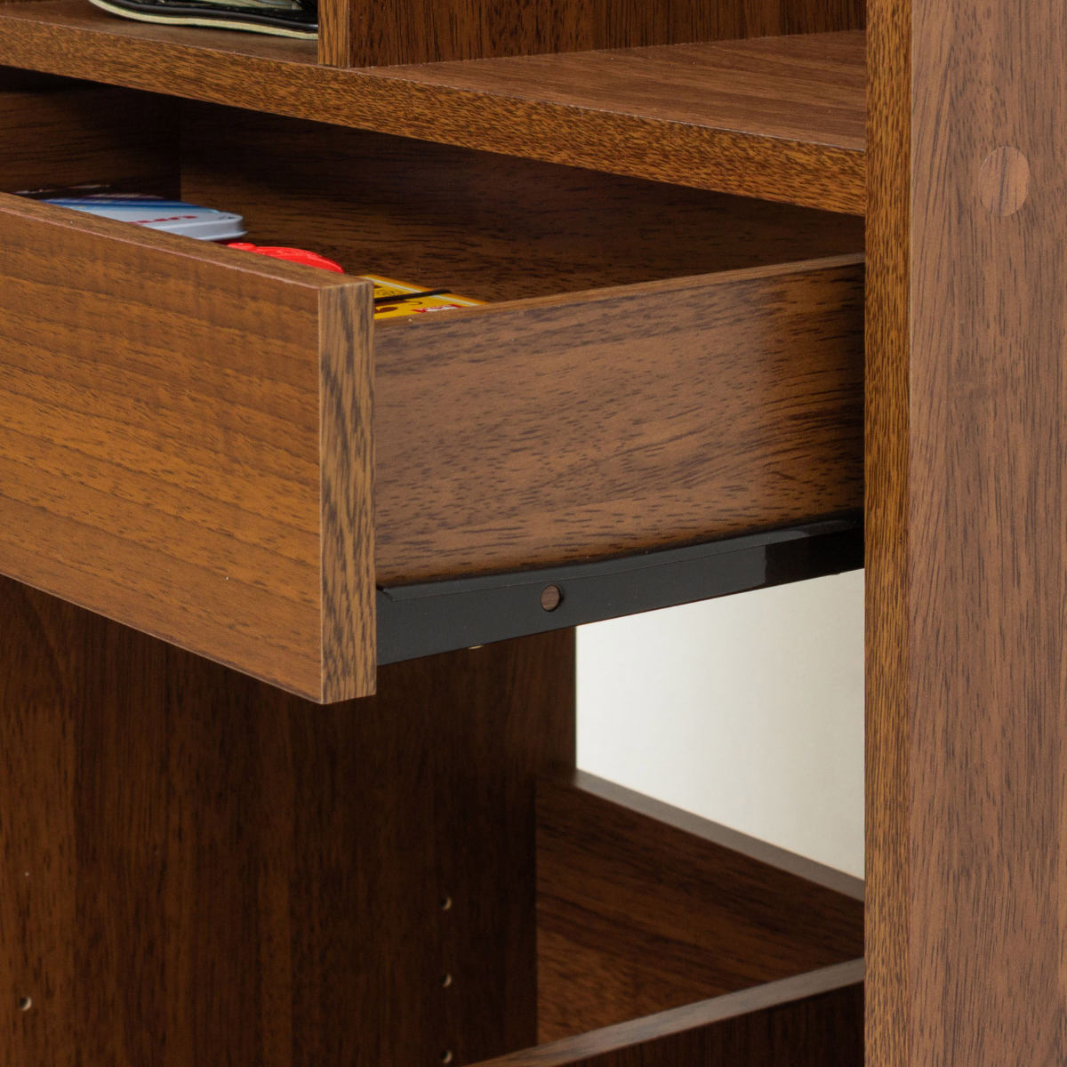 文具などのごちゃつきやすい小物類をすっきり収納できる引き出し付きです。