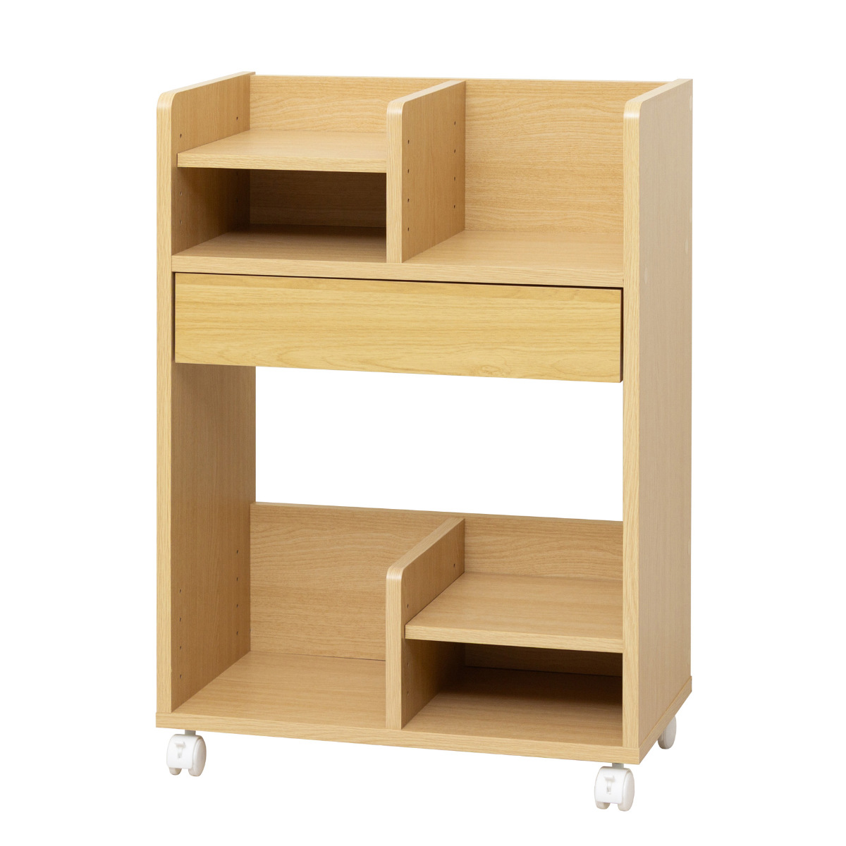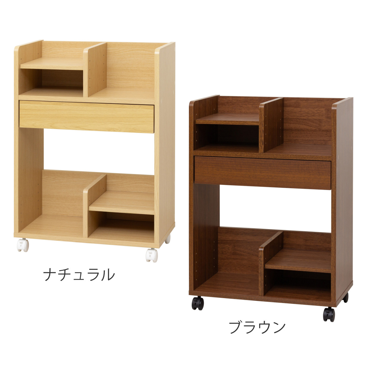 可動棚が2枚付属し、ランドセルや教科書、文房具など収納物に合わせて収納できます。可動棚はラック上部と下部、それぞれ左右お好みの位置に取り付けが可能です。使い方に応じてレイアウトを調整でき、無駄なく収納できます。